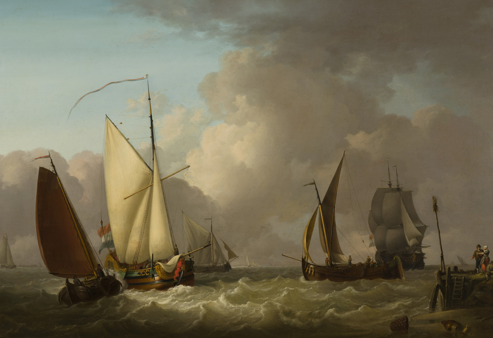Zeilboten op een woelige zee voor de kust