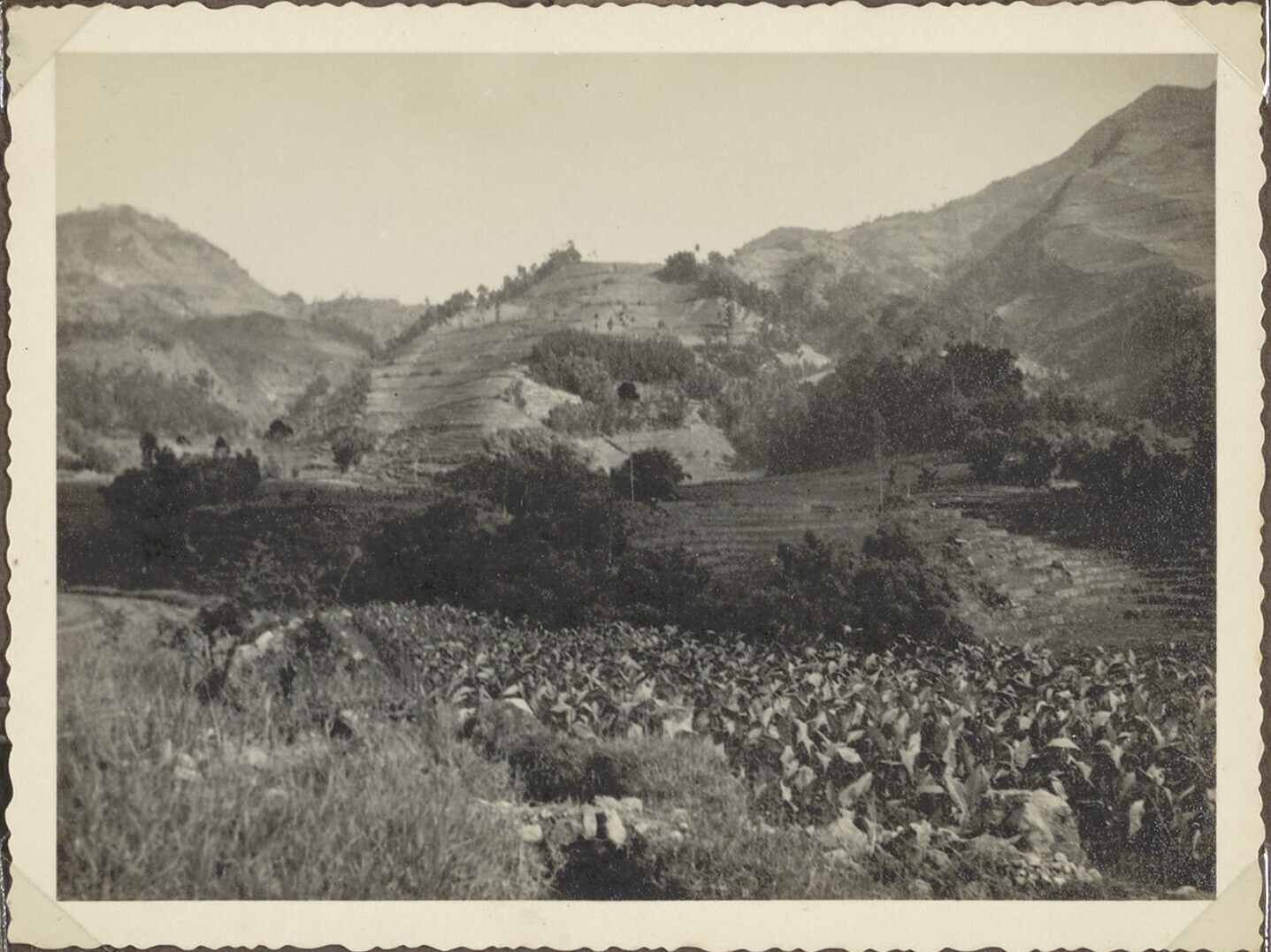 Uitzicht over rijstvelden en een theeplantage in de ...