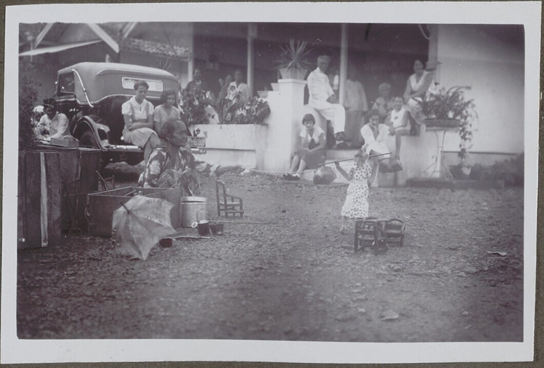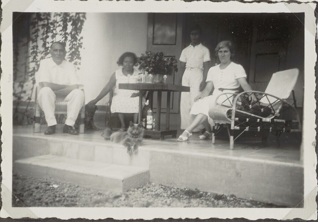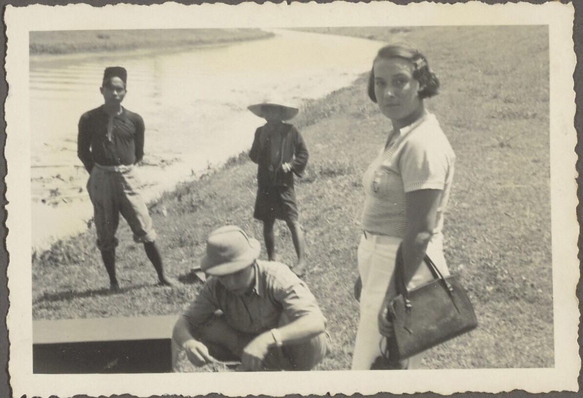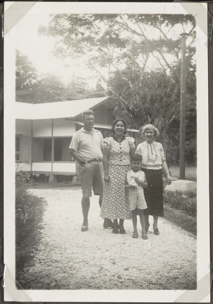Europese man en vrouw en Javaanse vrouw met kind voo...