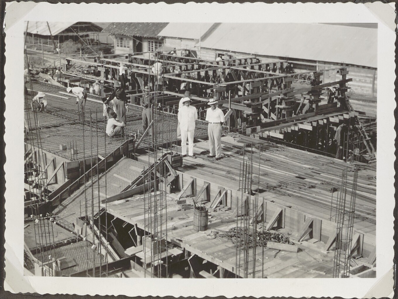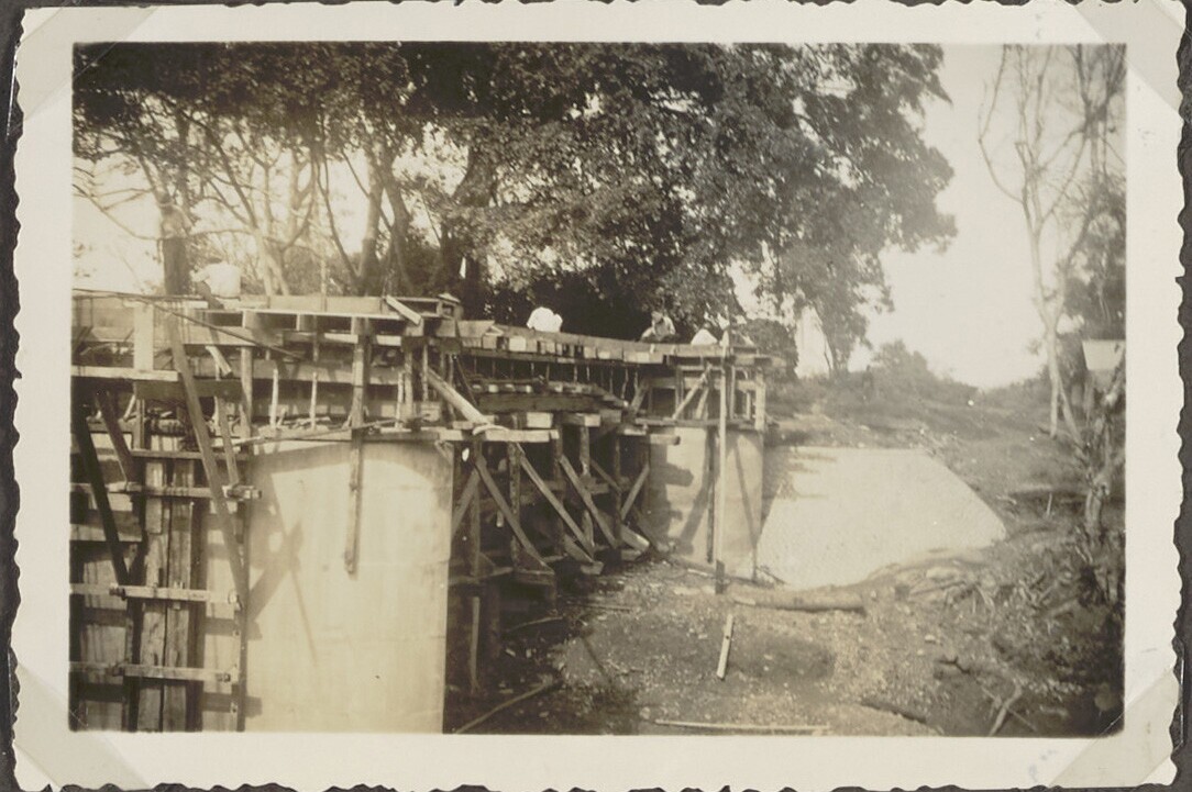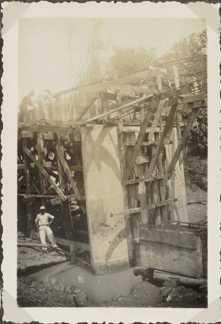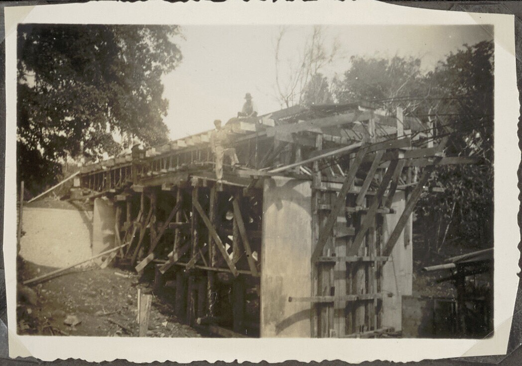 Brug in aanbouw met Javaanse arbeiders