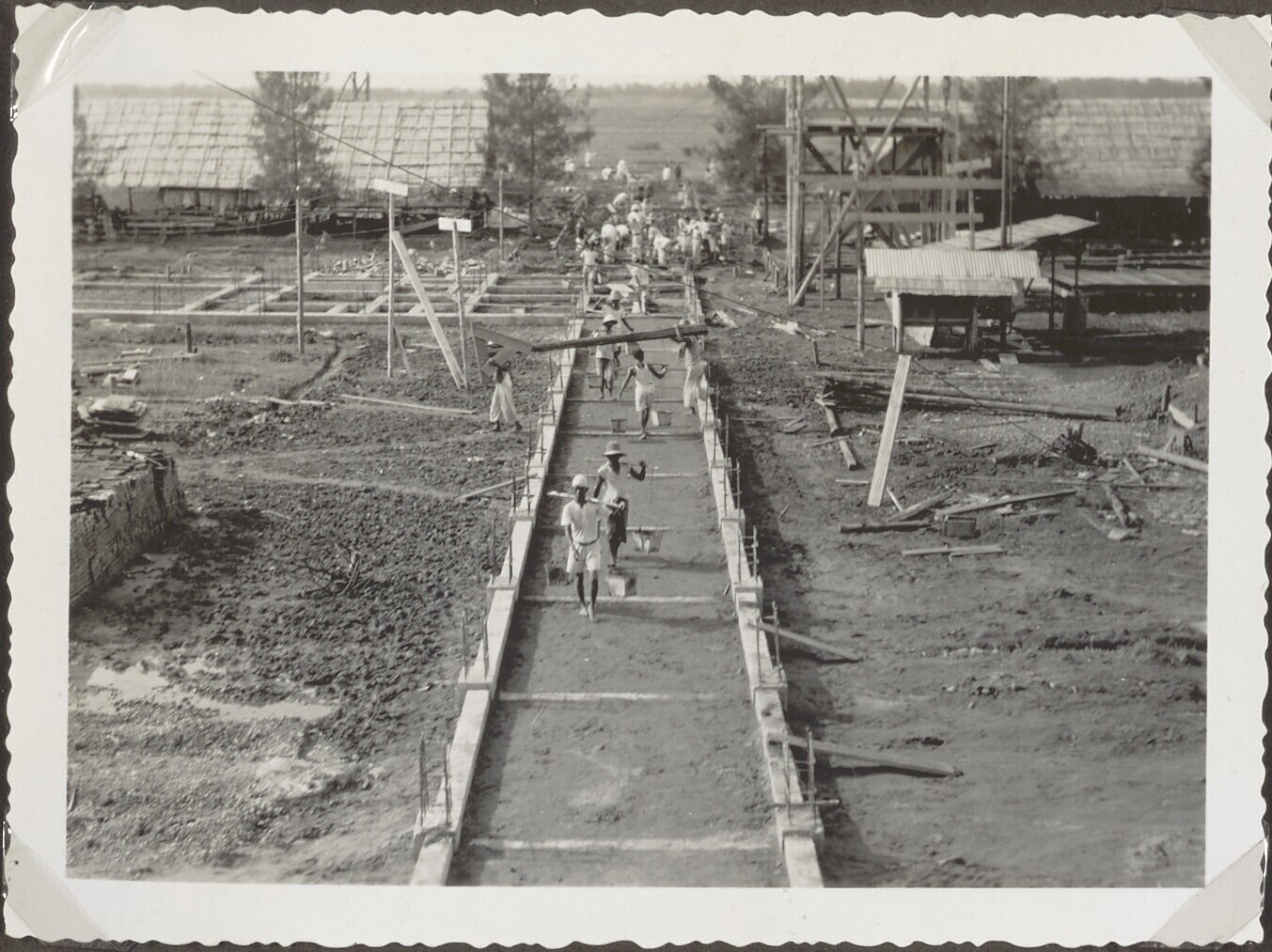 Aanleg van brug en wegen door Javaanse arbeiders