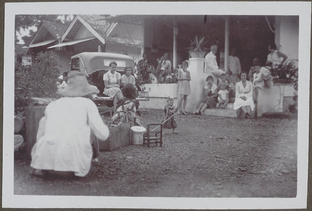 Europese man en vrouw en Javaanse man en kind bij de...