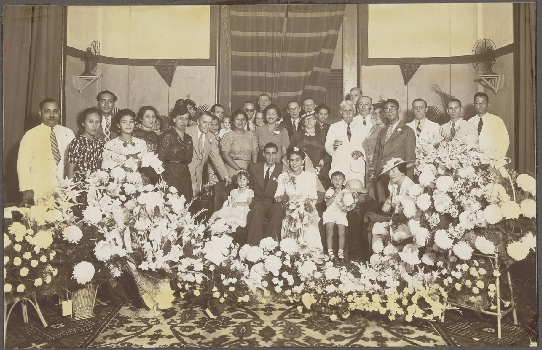 Groepsfoto van Javaanse en Europese mensen bij huwelijk