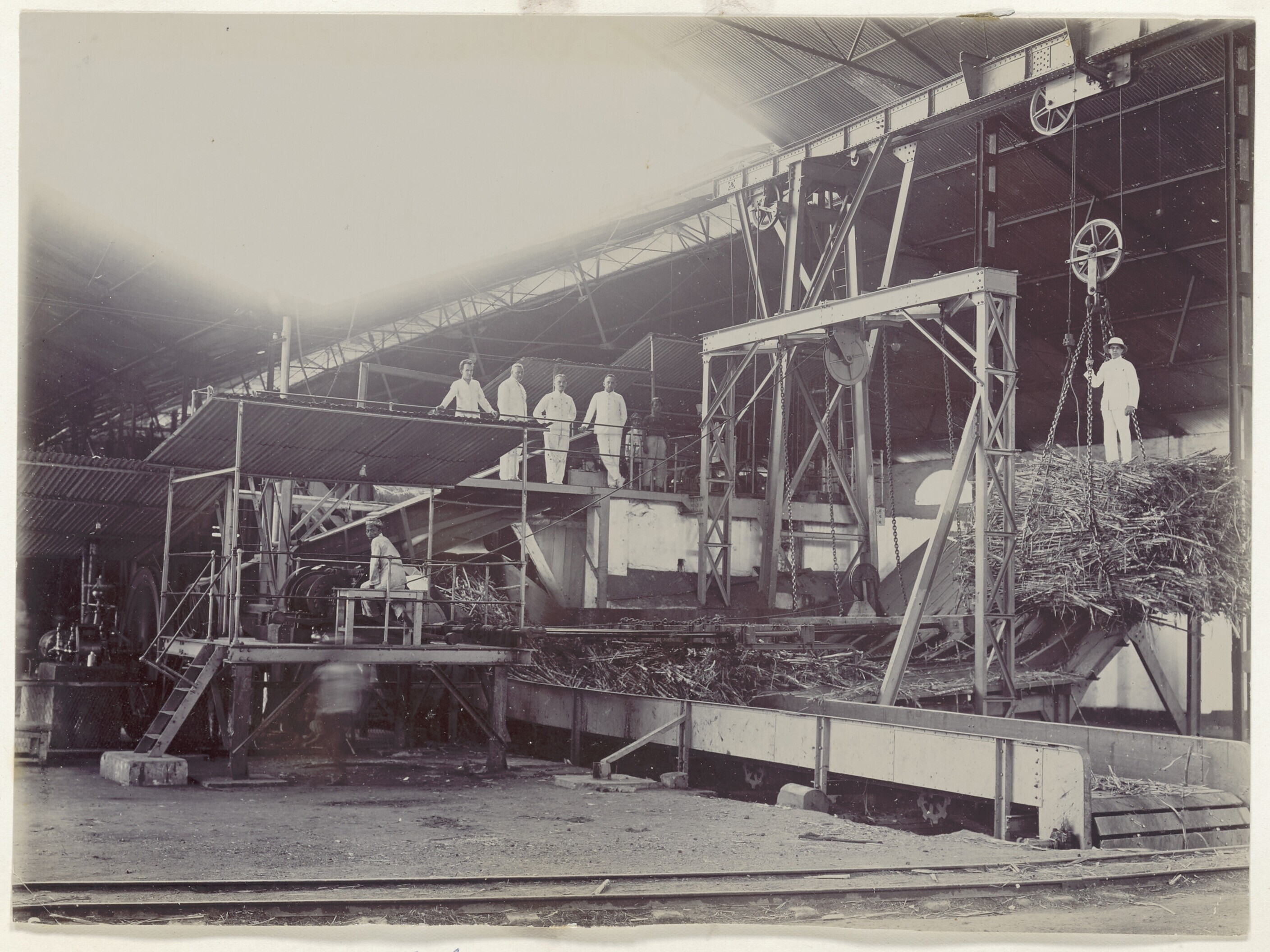 Suikerrietverwerking in suikerfabriek Bagoe