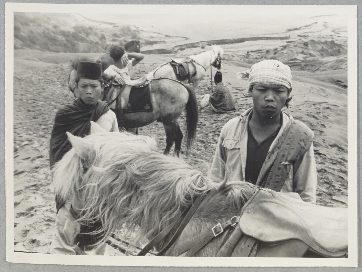Twee mannen en een vrouw bij de vulkaan Bromo tijden...