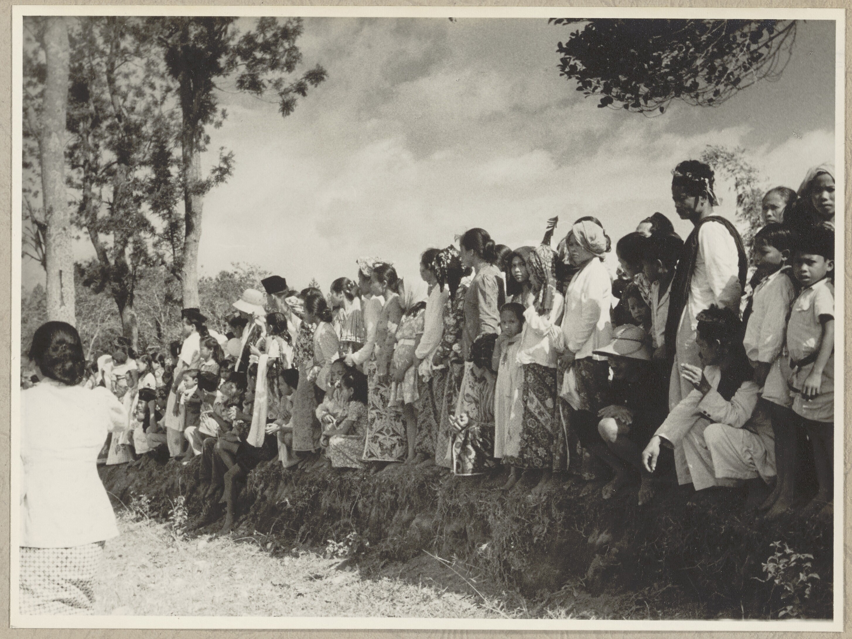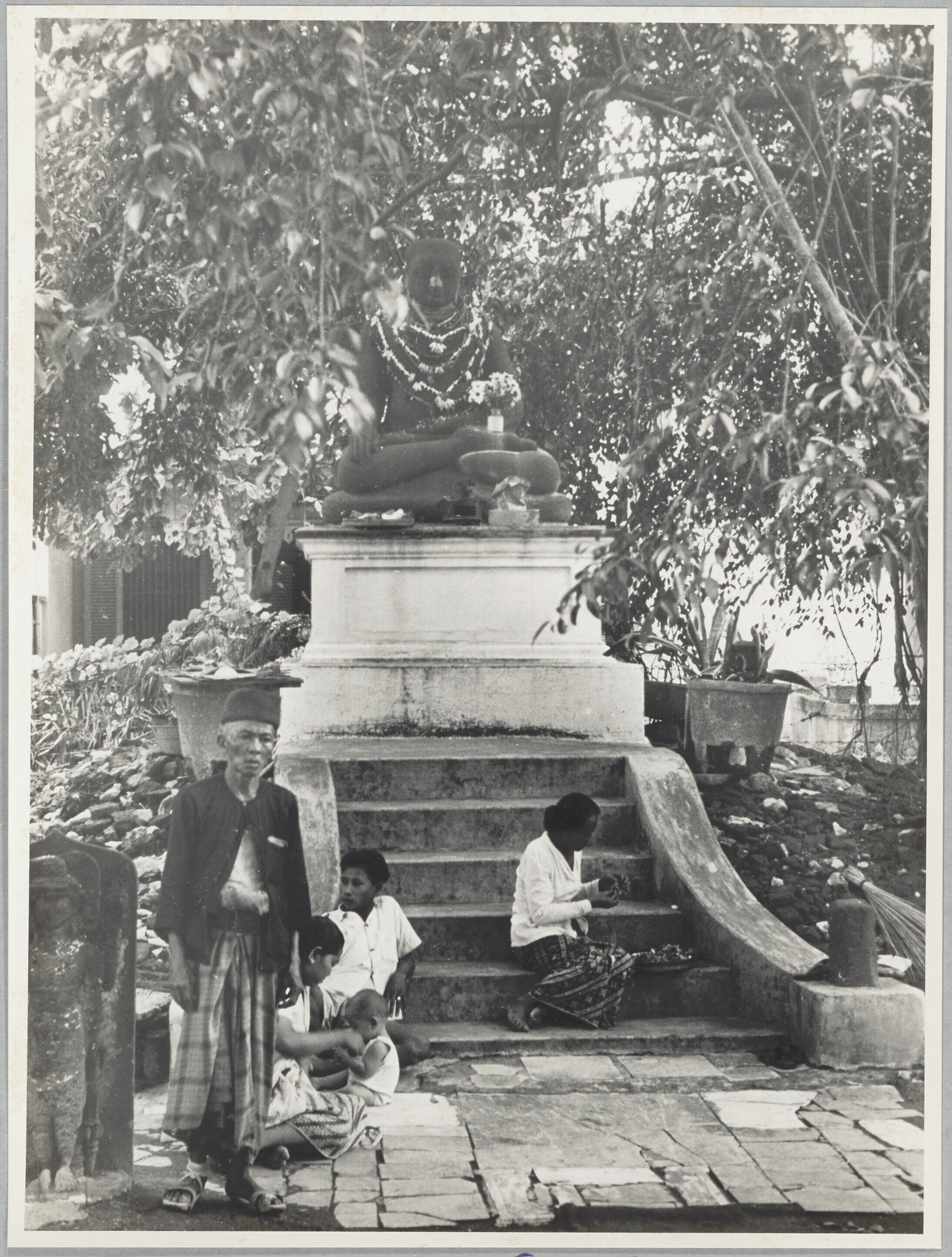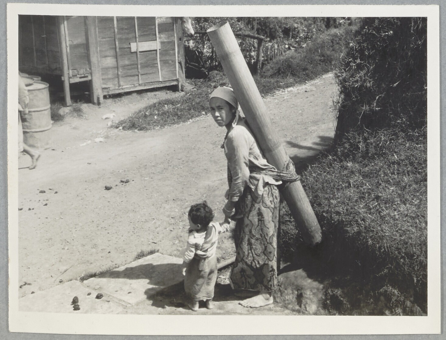 Javaanse vrouw met een kind aan haar hand en een wat...