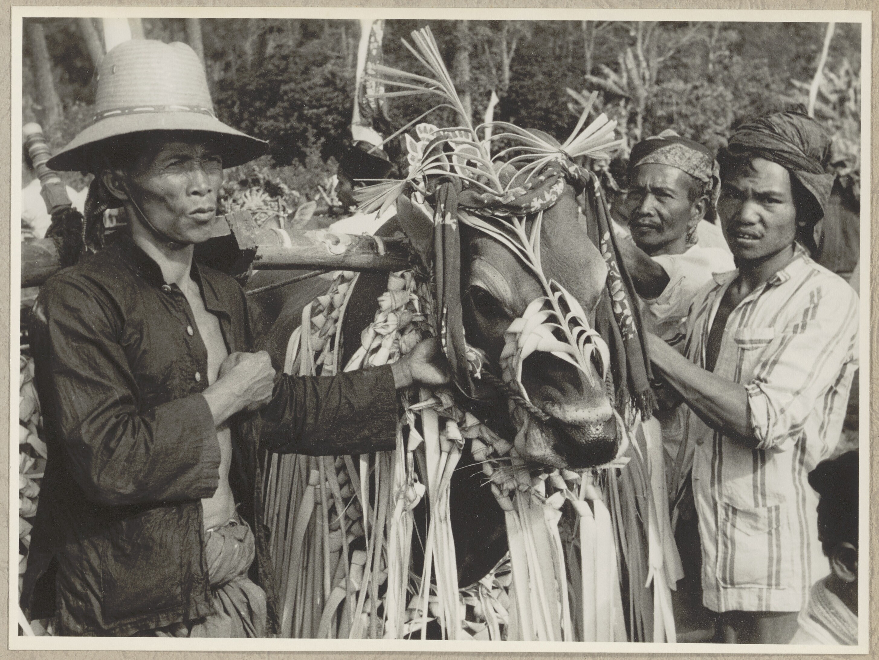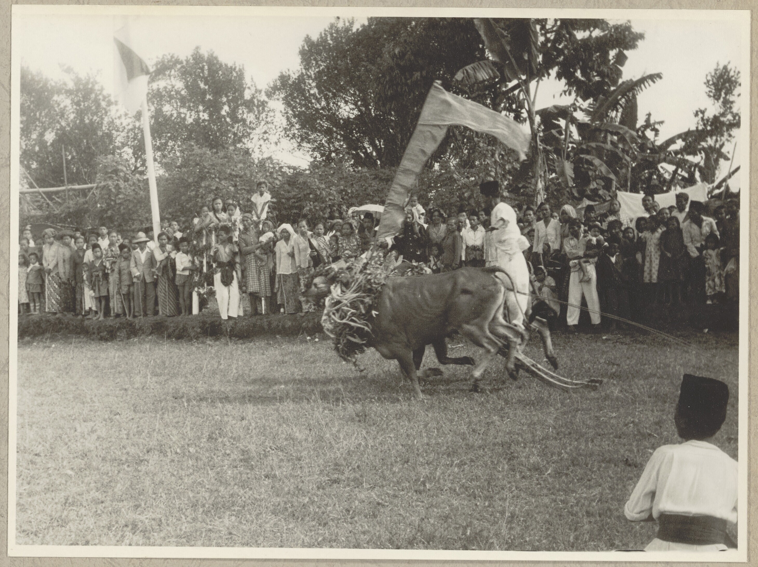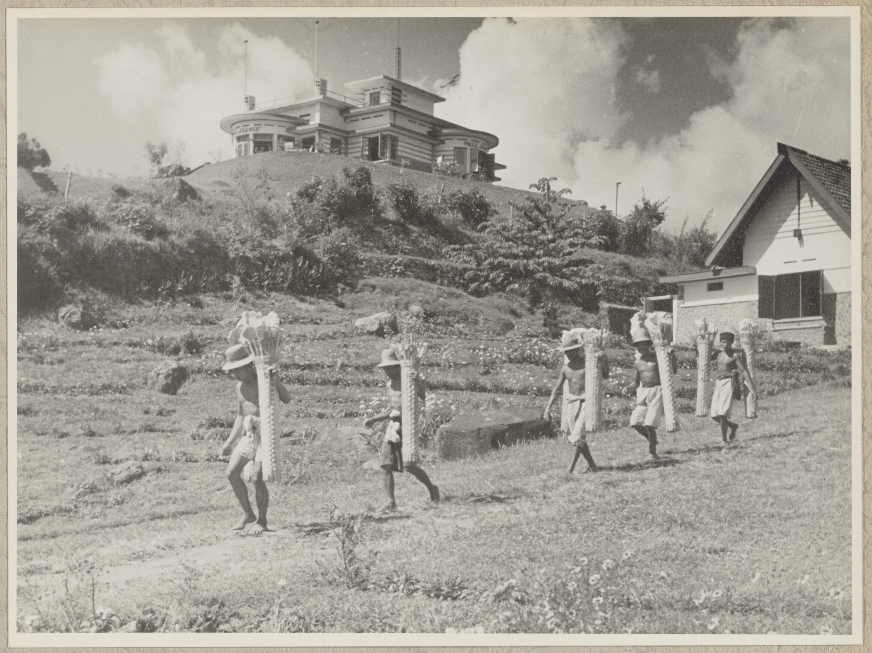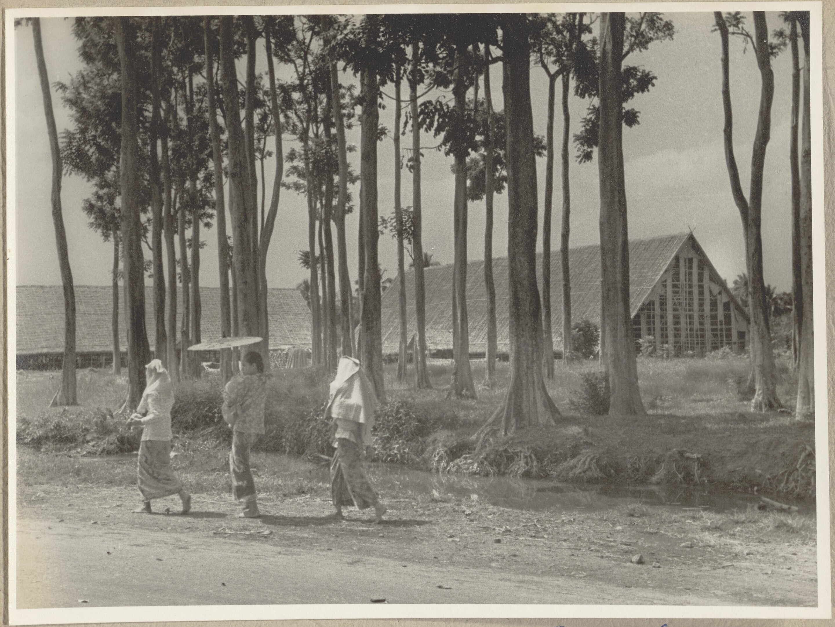 Javaanse vrouw met een kind aan haar hand en een wat...