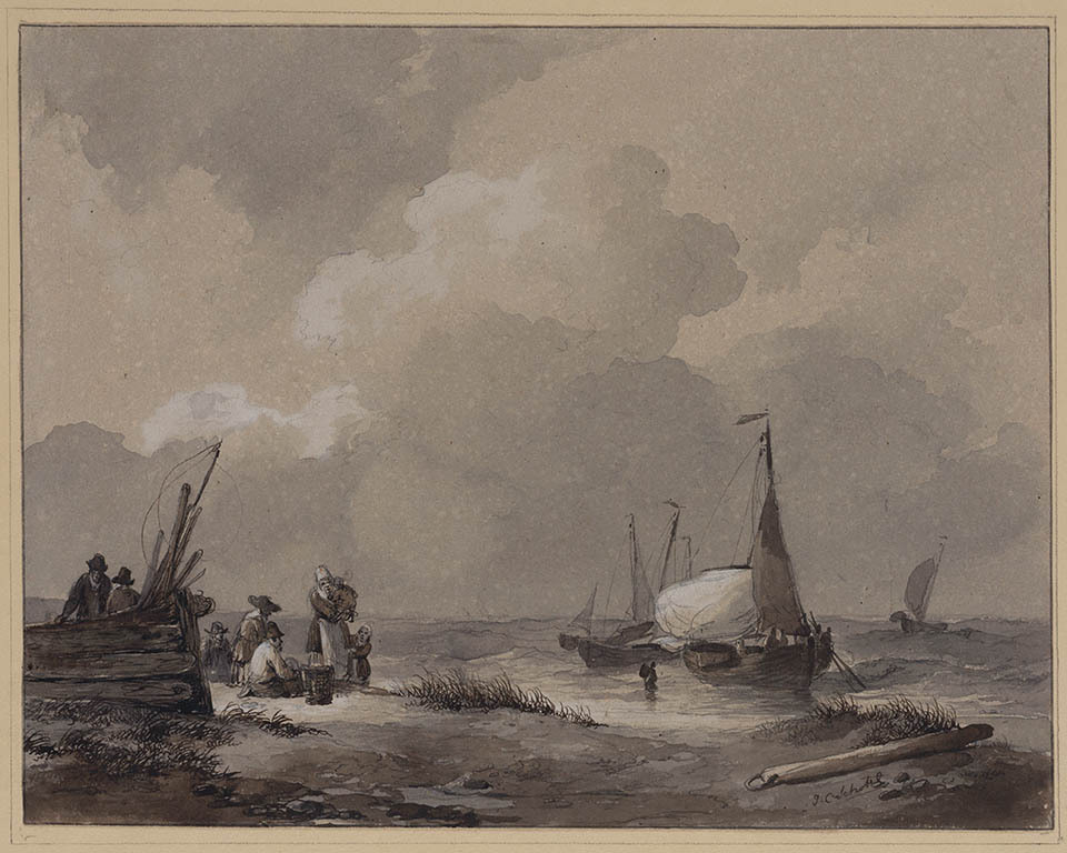 Strandgezicht met vissers