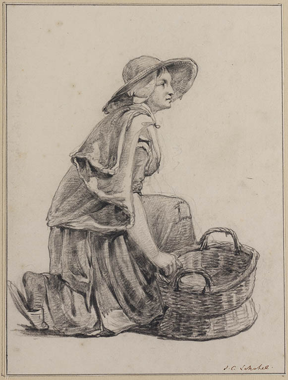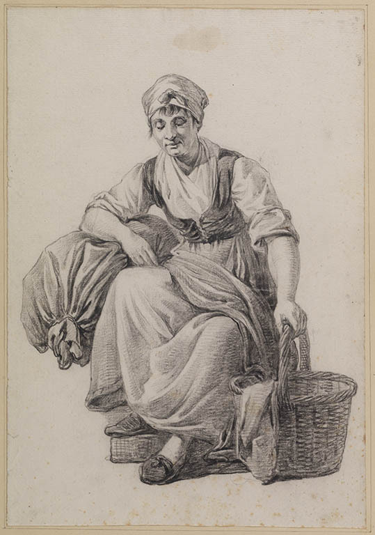 Studie van een zittende vrouw met mand