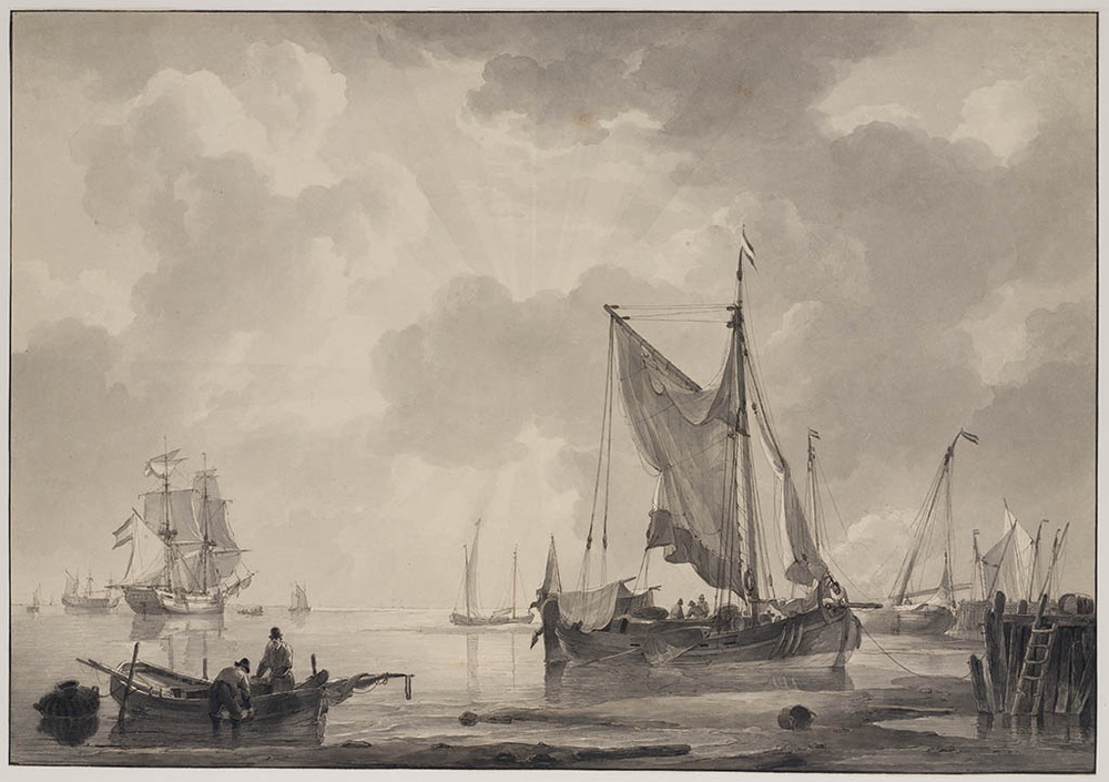 Havengezicht met zeilschepen