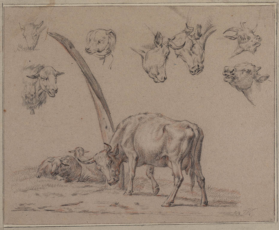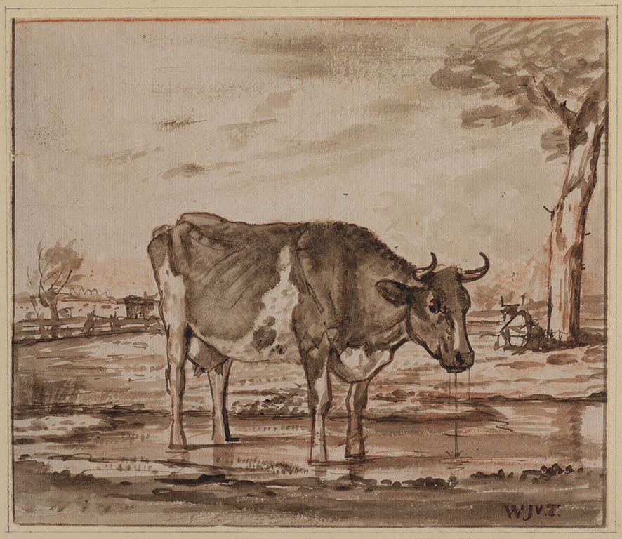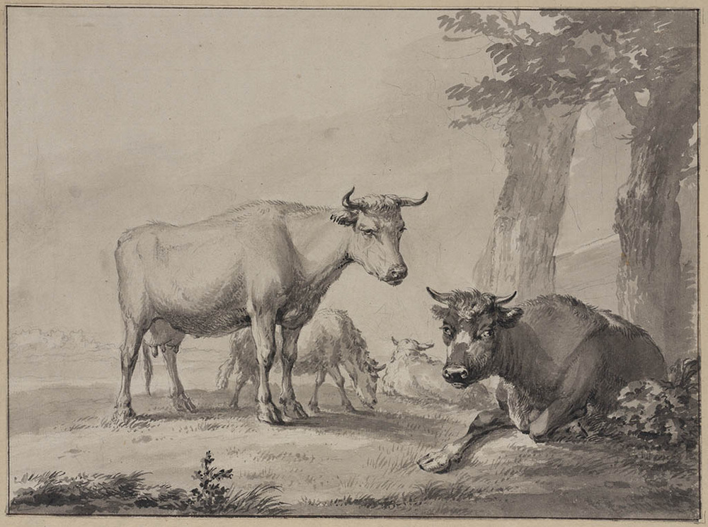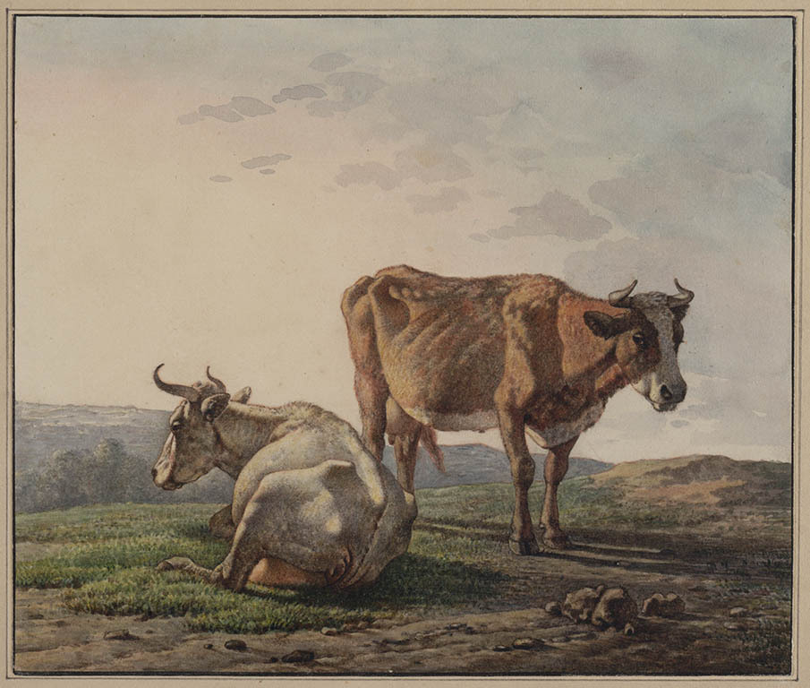 Landschap met liggende en staande koe