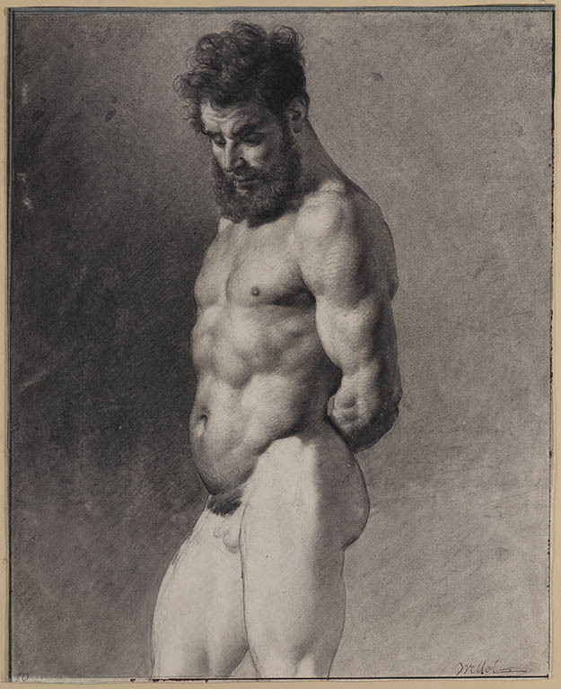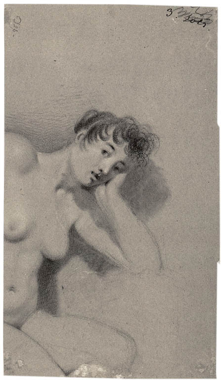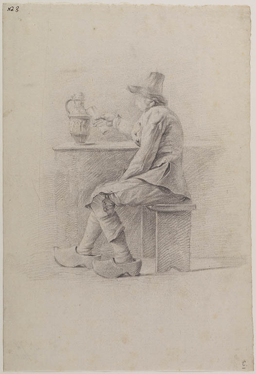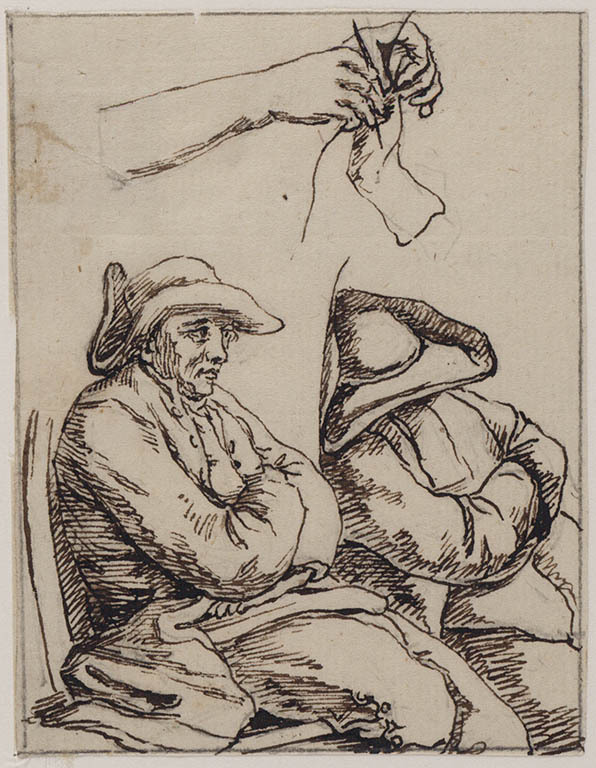 Twee studies van een zittende man en een studie van ...