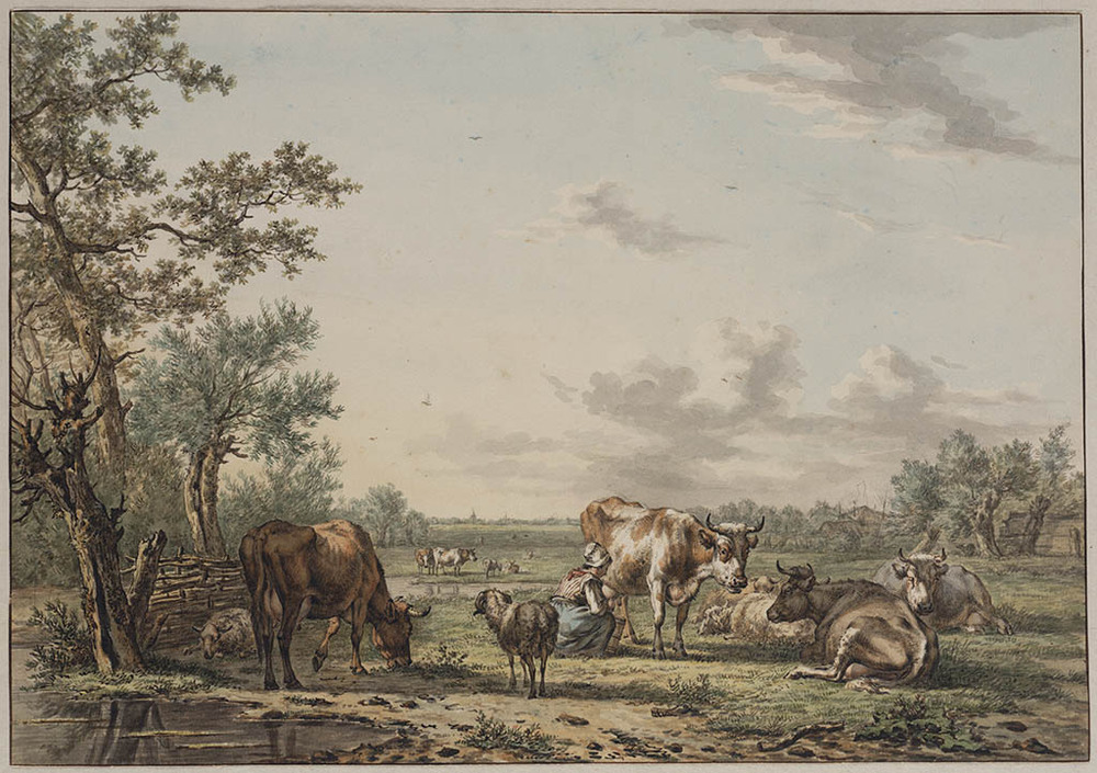 Landschap met vee en melkmeisje