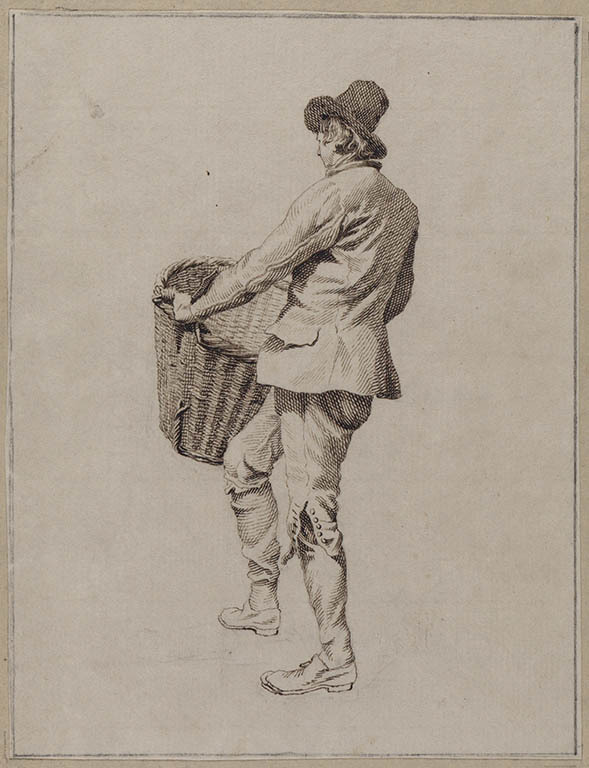 Man met mand; op de rug gezien