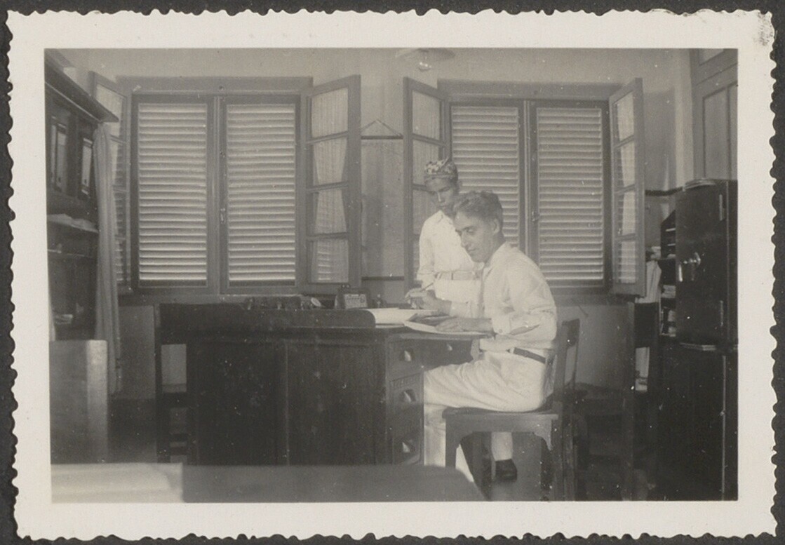 Een Europees ambtenaar en Javaans personeelslid in e...