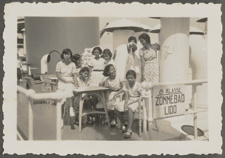 Drie Europese vrouwen, twee Javaanse verpleegsters e...