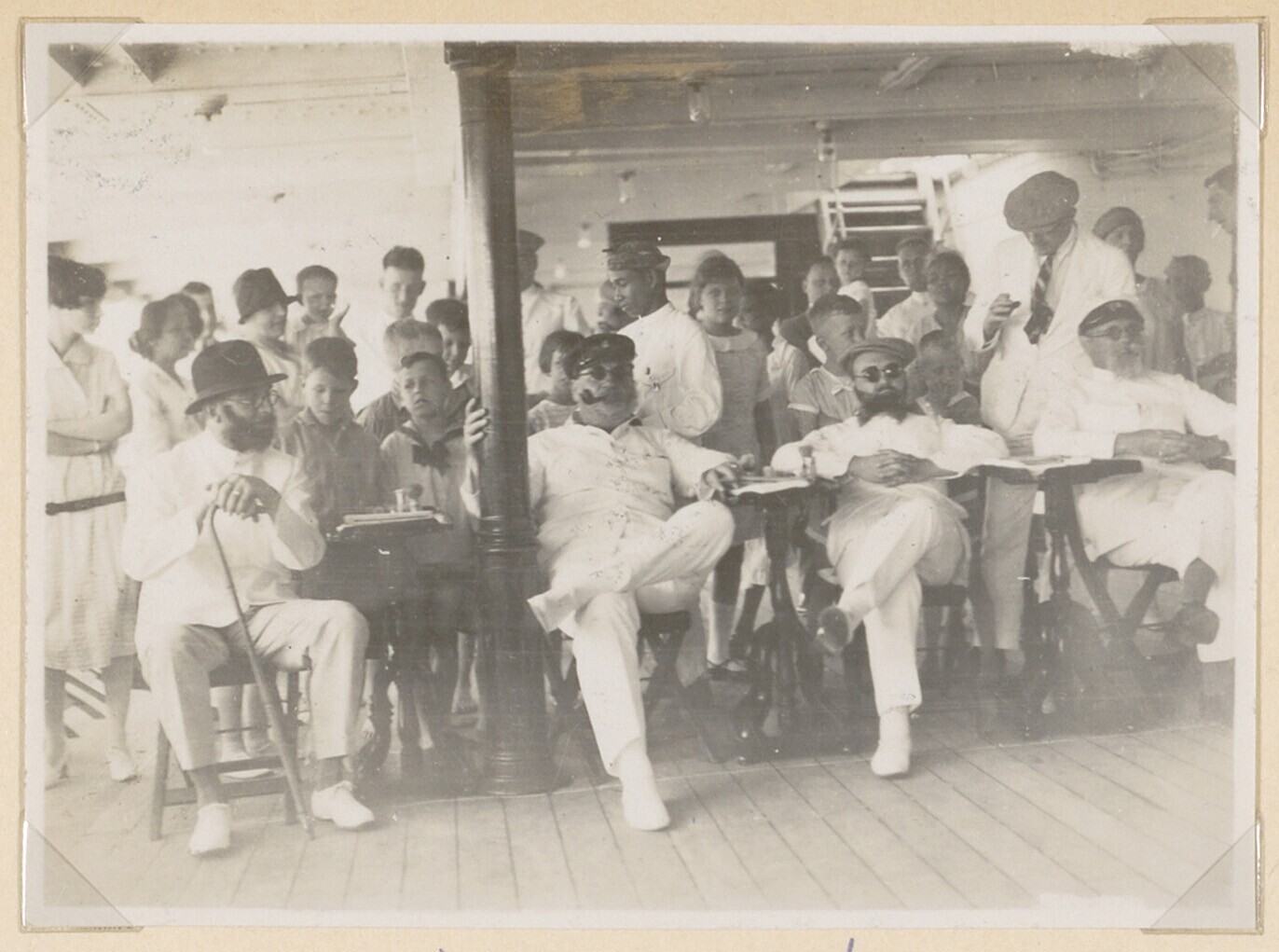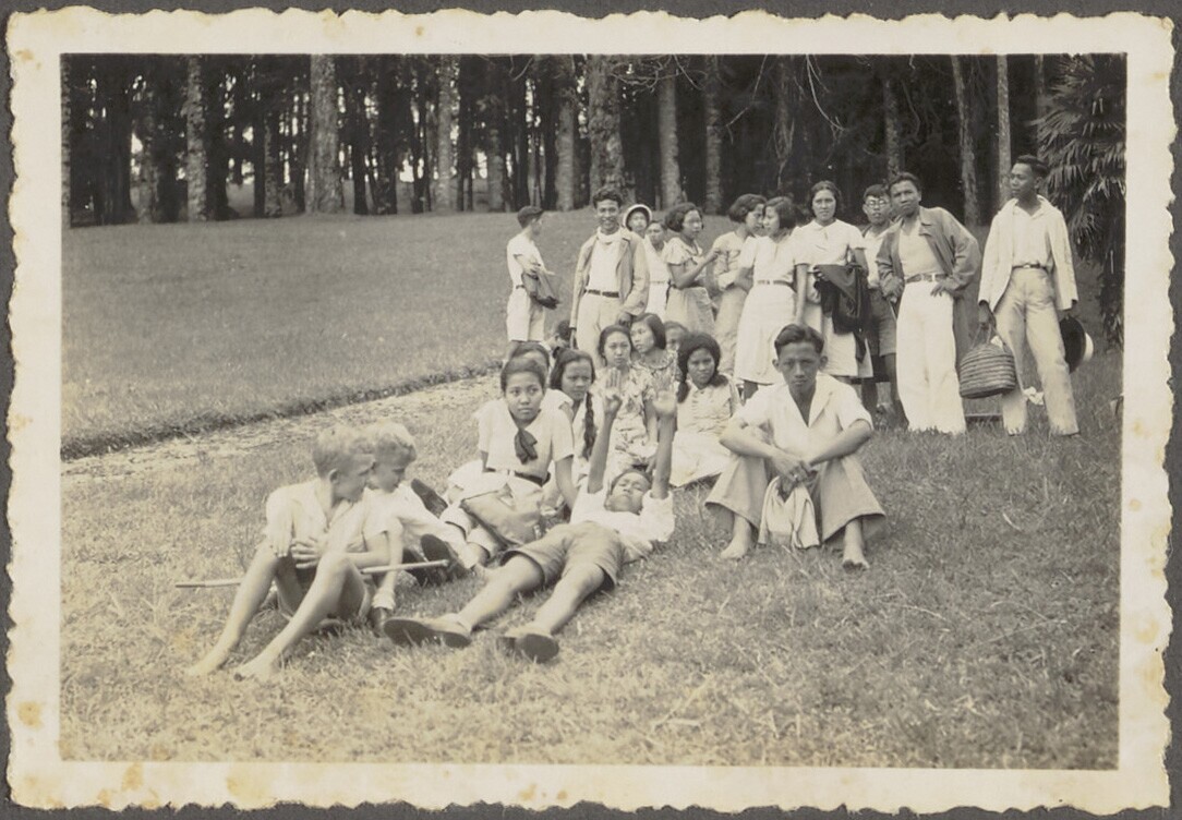 Groepsportret van mannen en vrouwen aan de rand van ...
