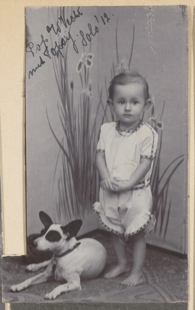 Portret Europees kind, Pofs van de Vecht met hond To...