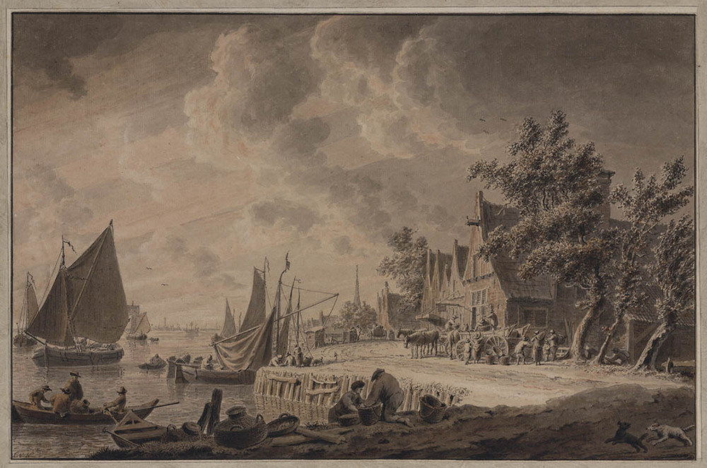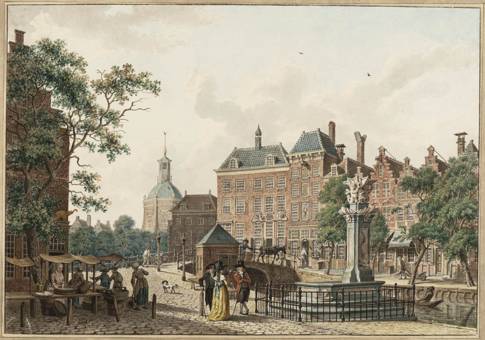 De vismarkt aan de Nieuwe Rijn te Leiden