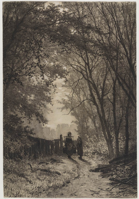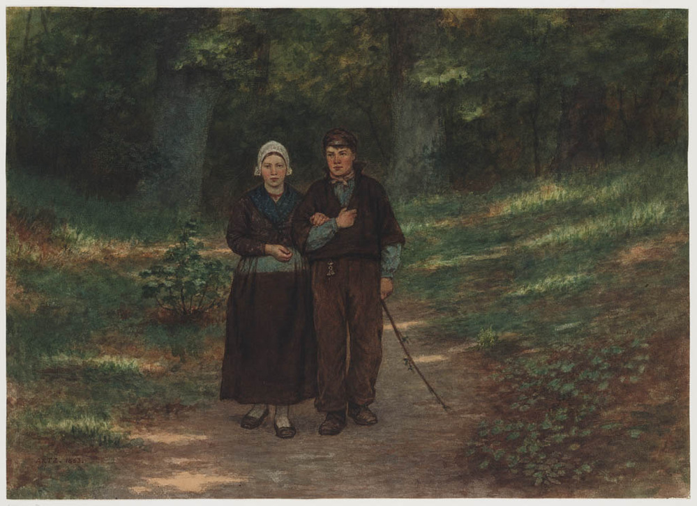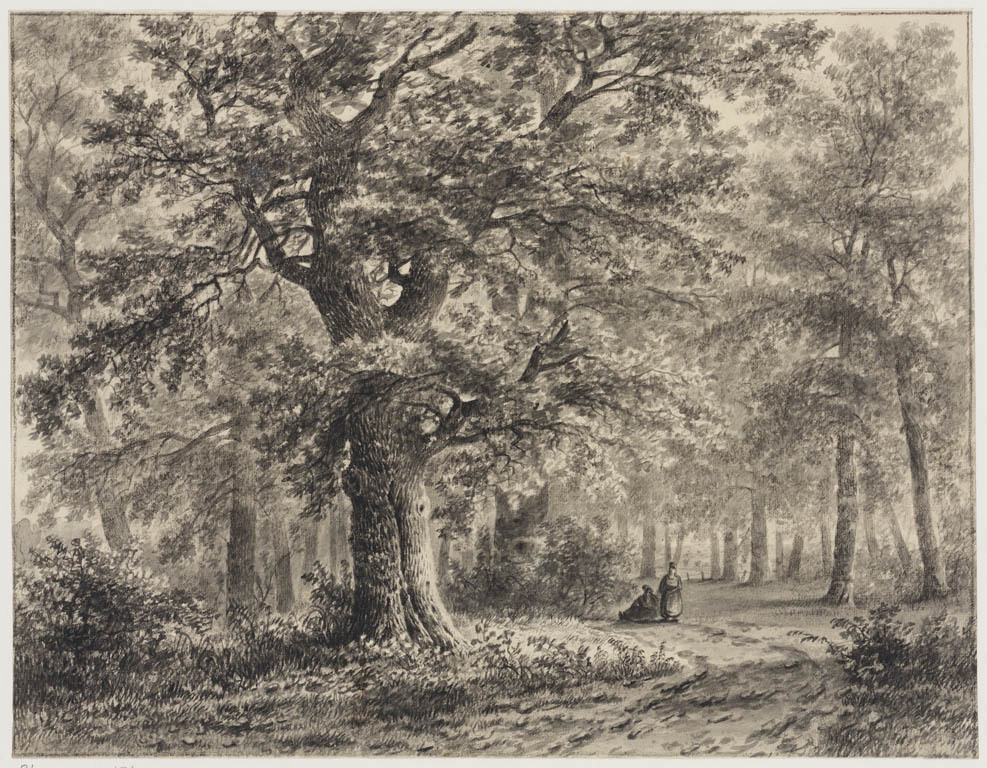 Bosgezicht met twee figuren