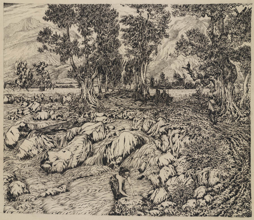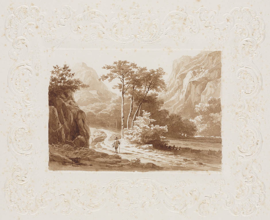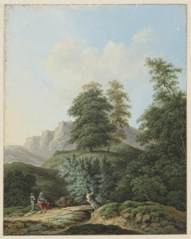 Bergachtig landschap met twee figuren