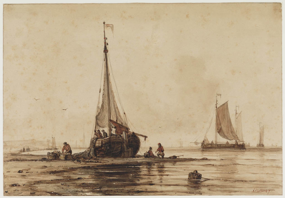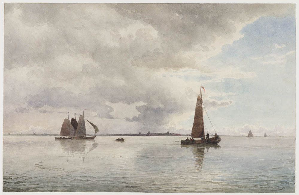 Studie van een vissersboot op het IJ