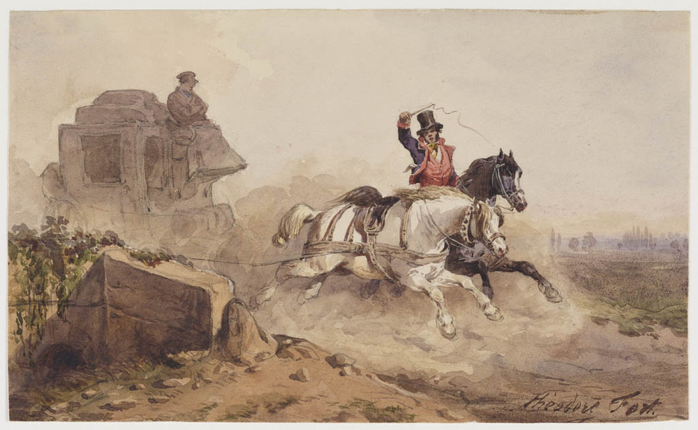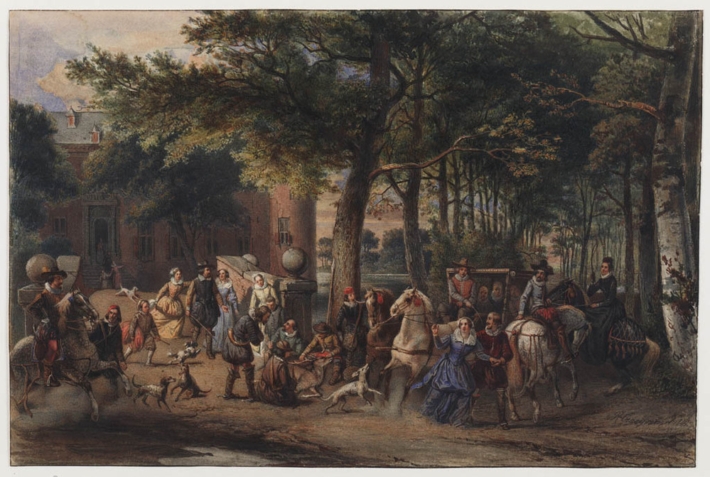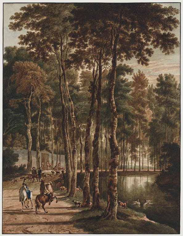 Berkenlaan met jachtgezelschap