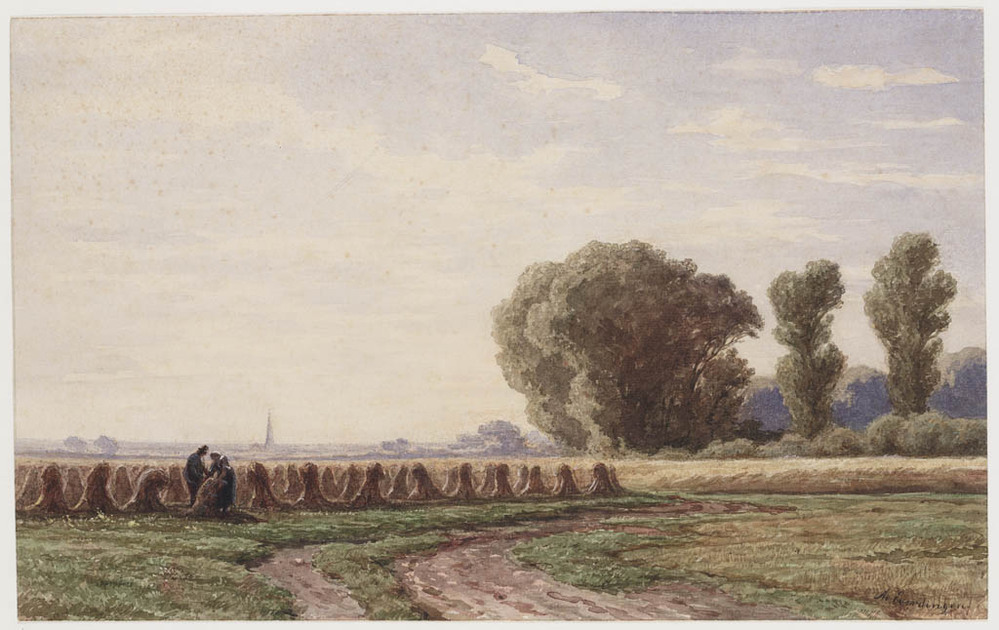 Weidelandschap met boeren karren
