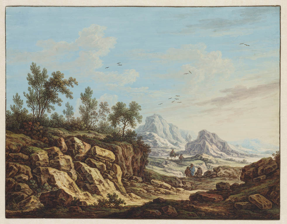Landschap met wandelaars
