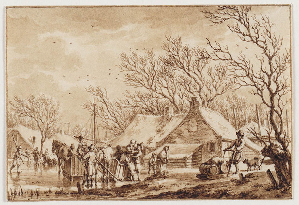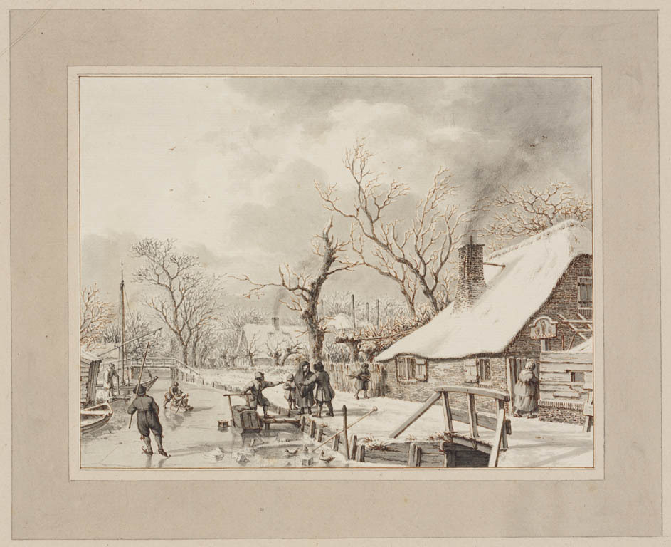 Winterlandschap met figuren op het ijs