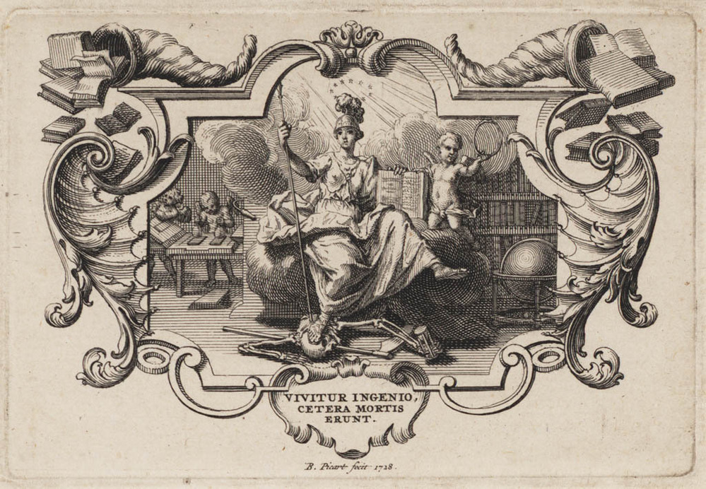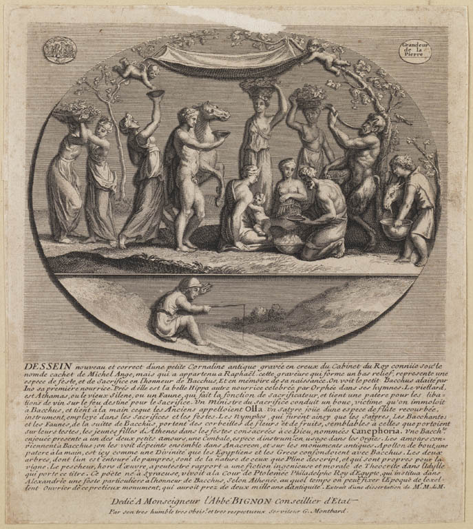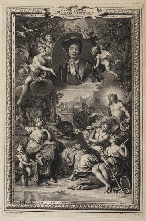 Apollo ontvangt portret van Fontenelle op Parnassus