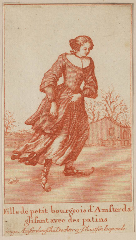 Jonge Amsterdamsche dochter op schaatsen lopende