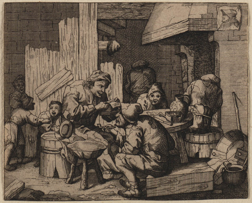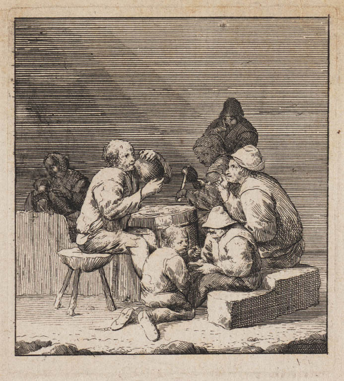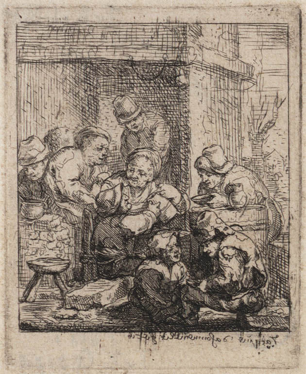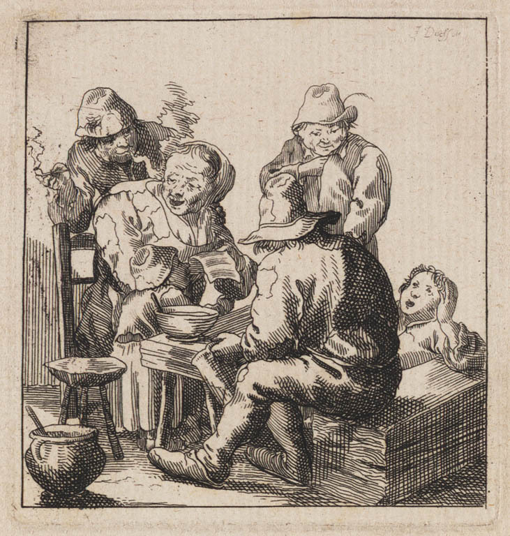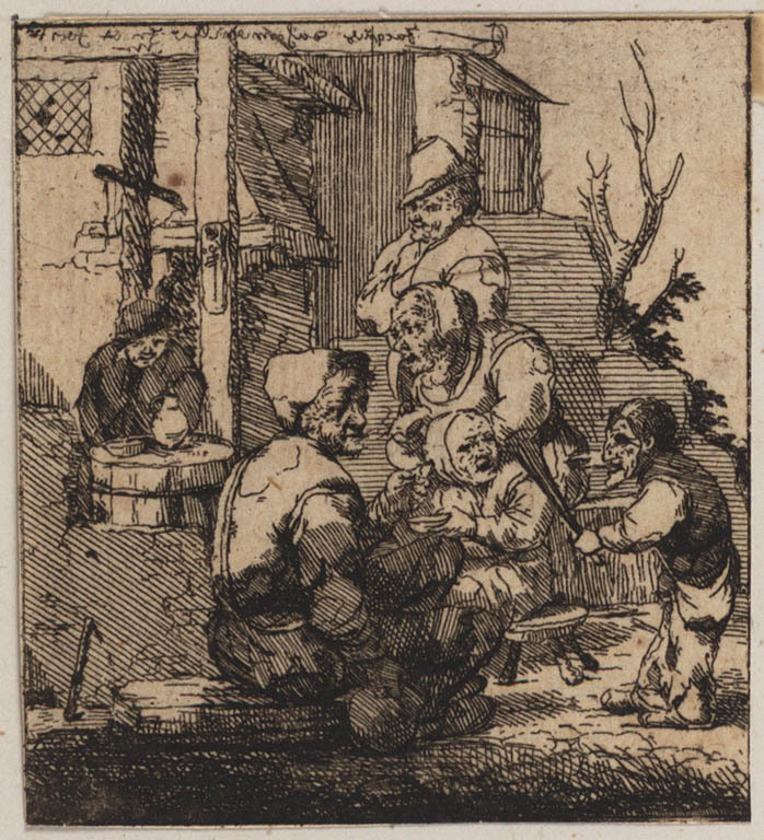 Gezelschap met zingende boerin