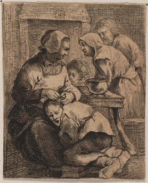 Vrouw verwijdert ongedierte uit het haar van een jongen