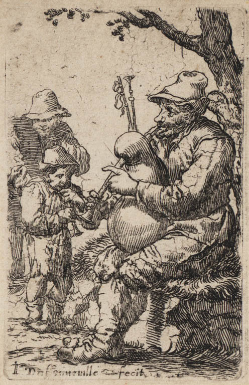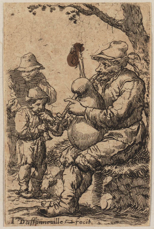 Man met doedelzak en jongen met fluit