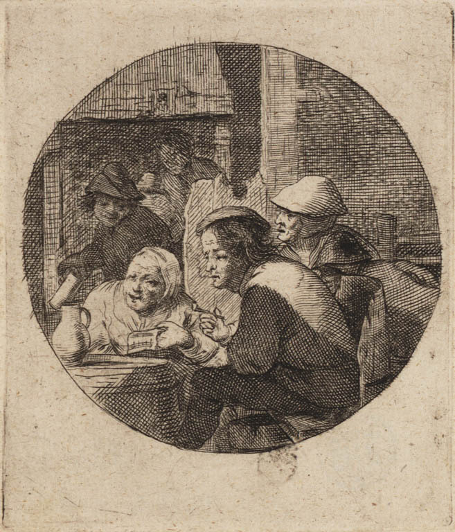 Gezelschap met een brief lezende figuur