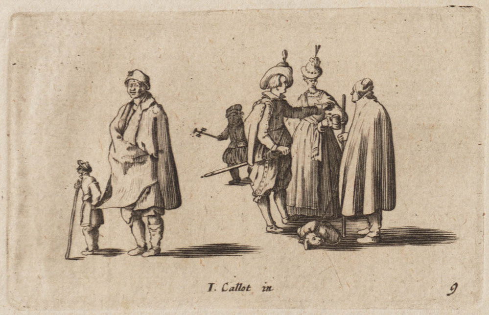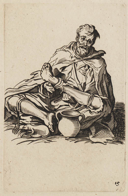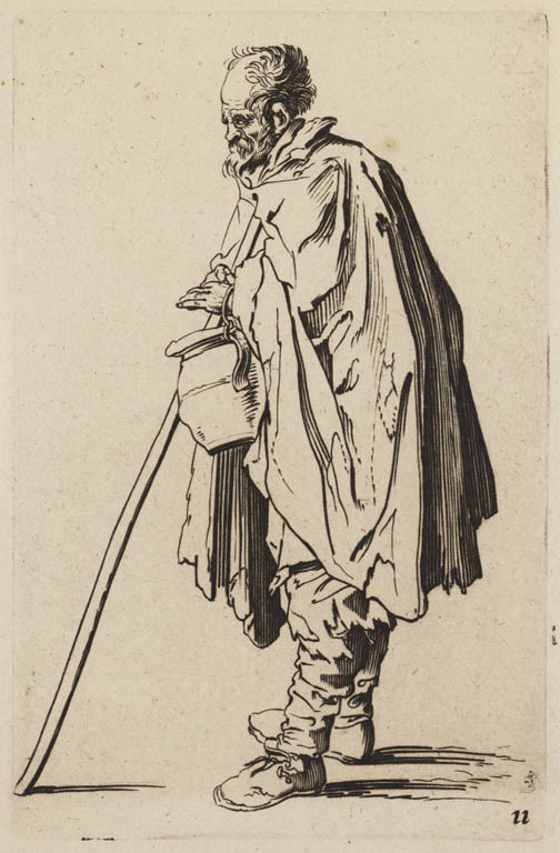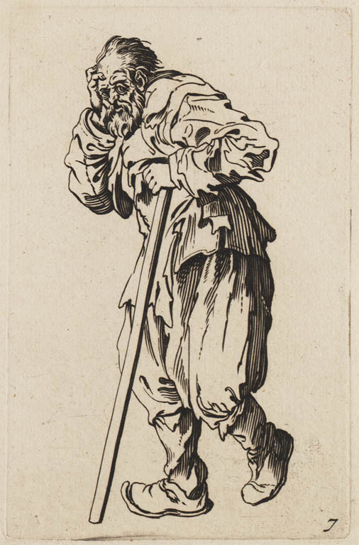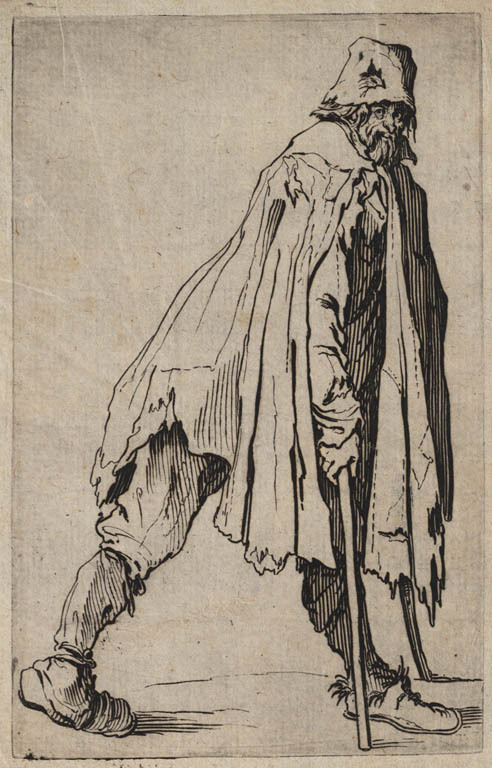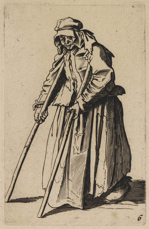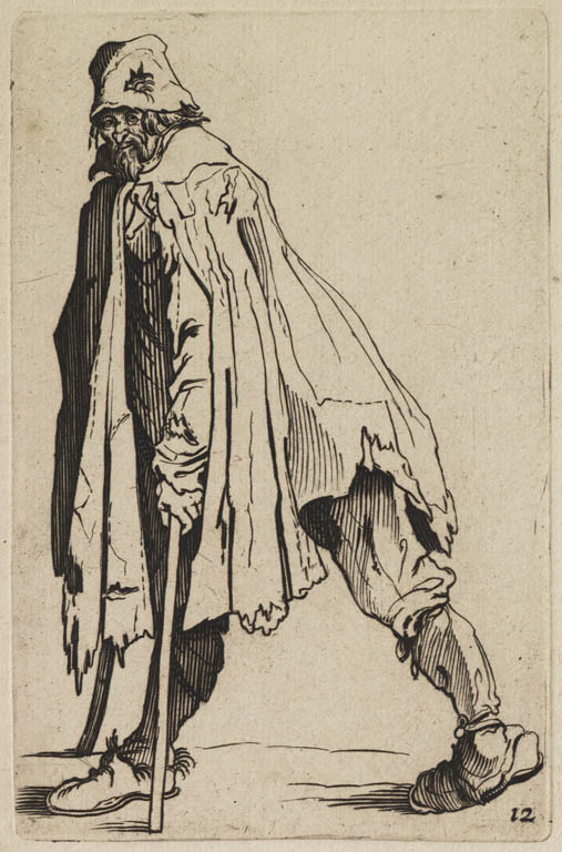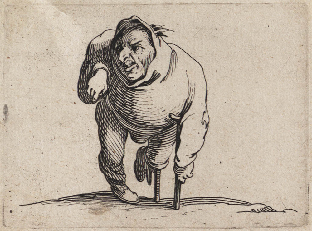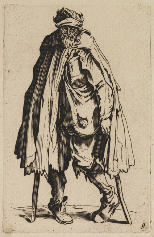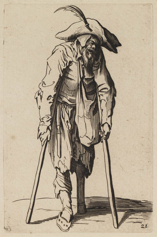 Bedelaar met krukken en hoofdband ("Bedelaars")