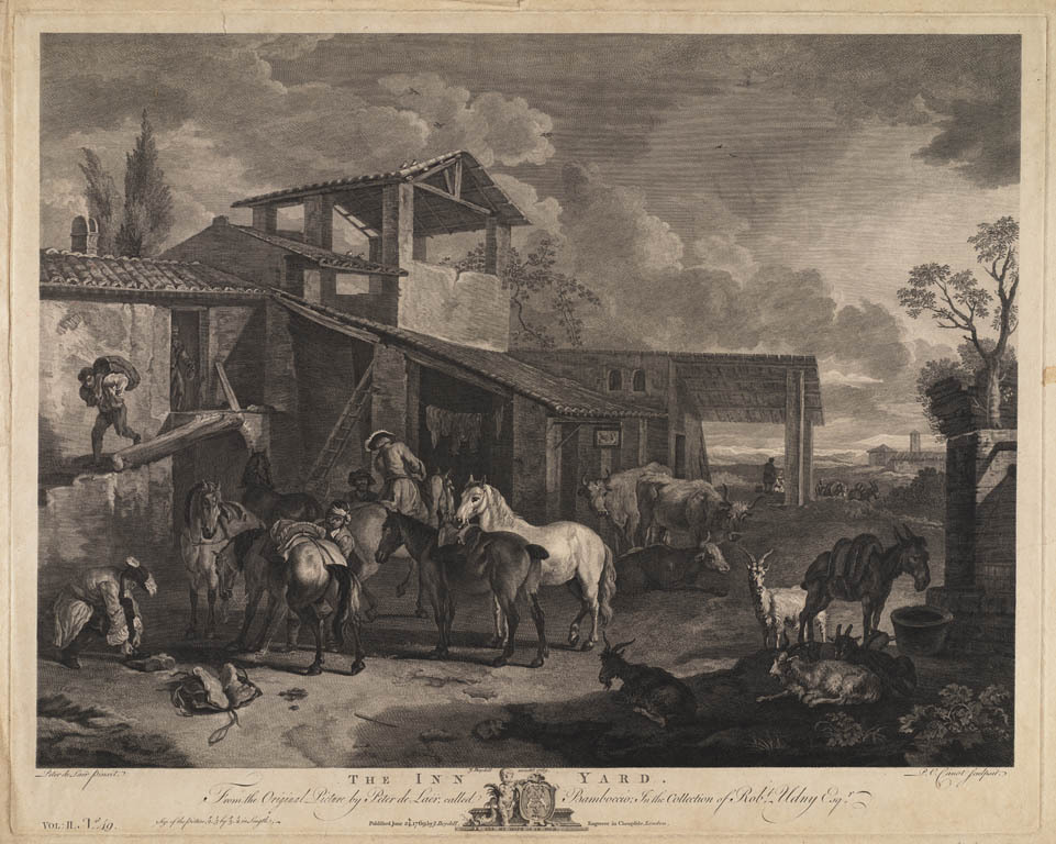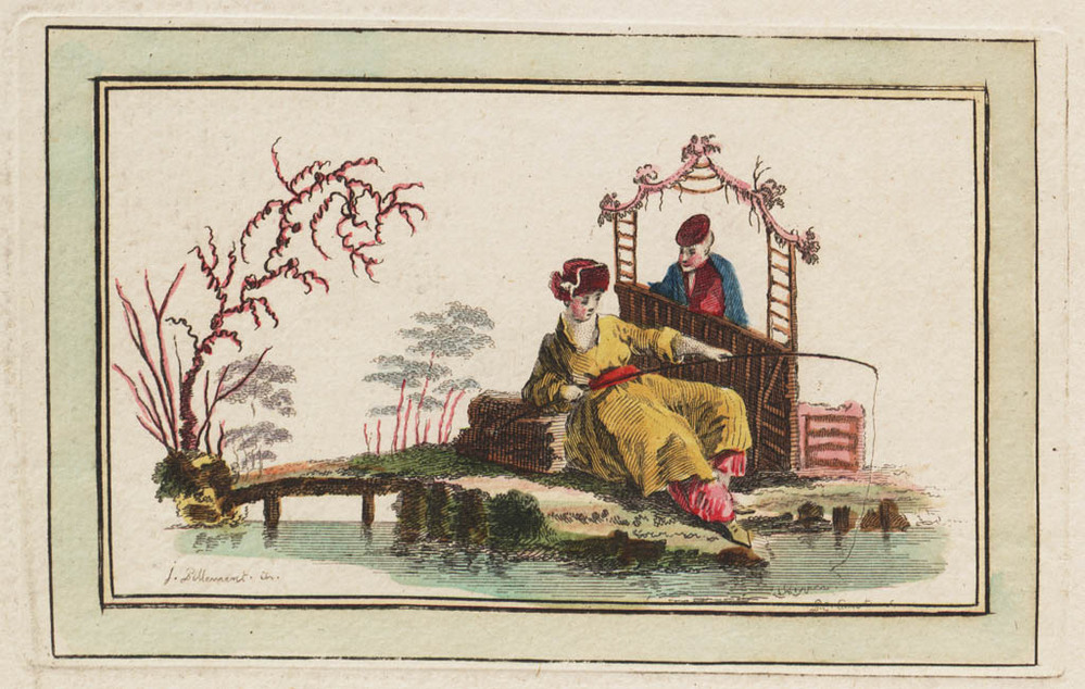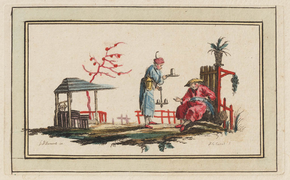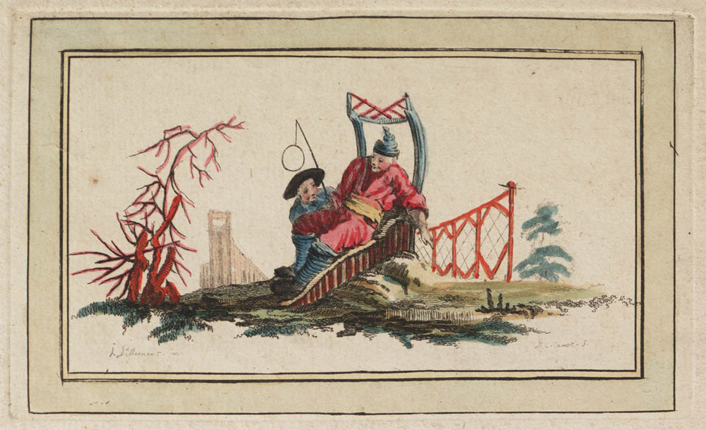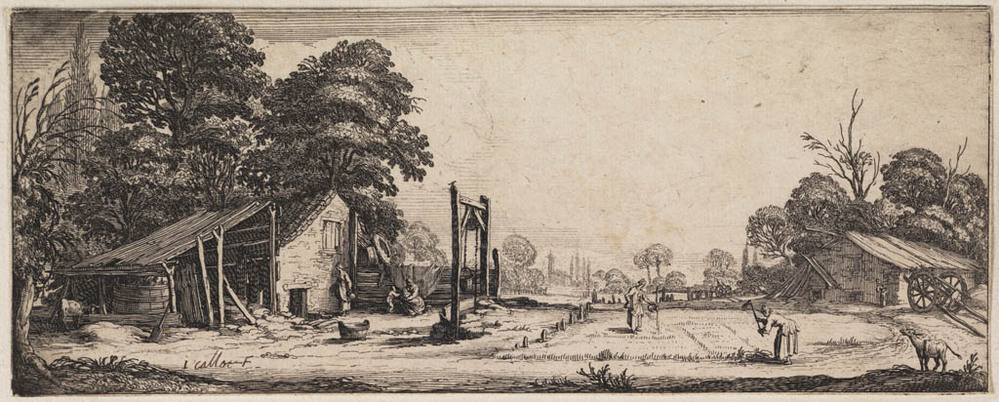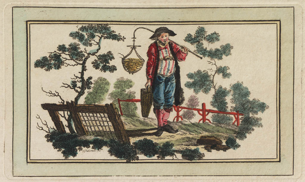 Dwerg met bochel speelt viool op rooster ("Gebocheld...