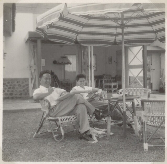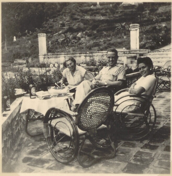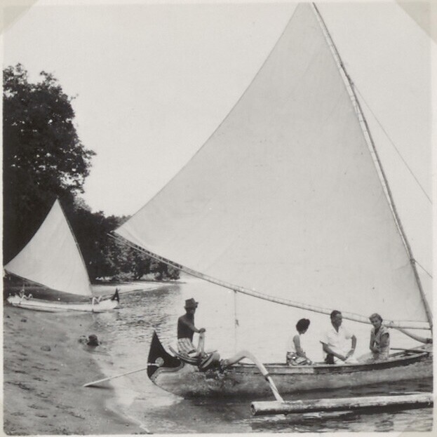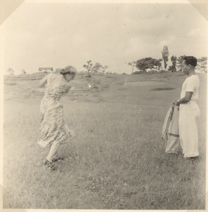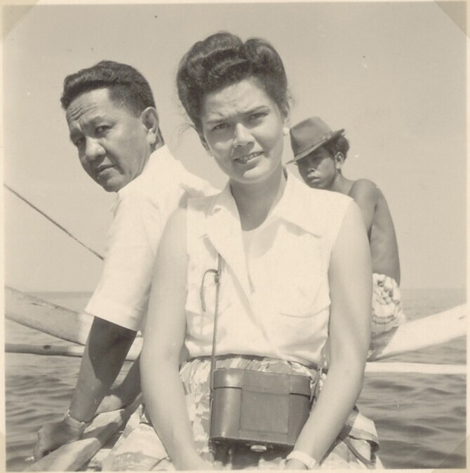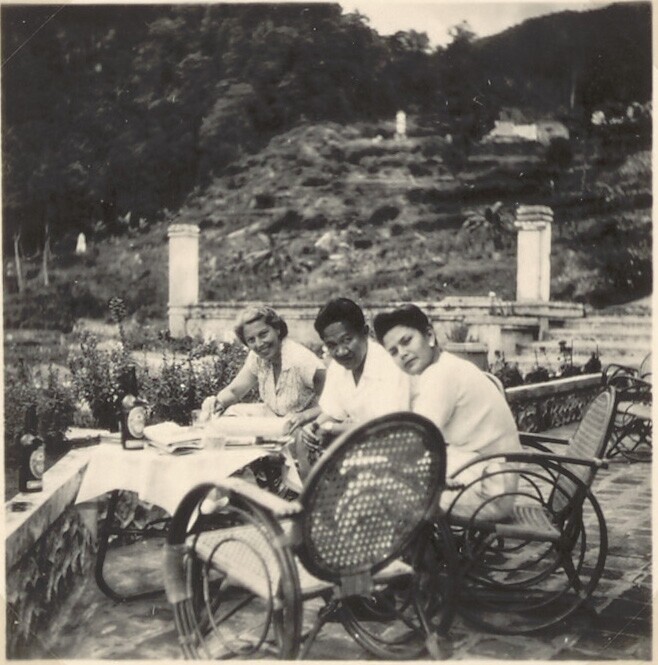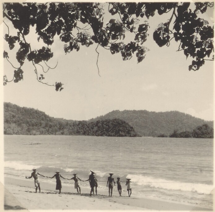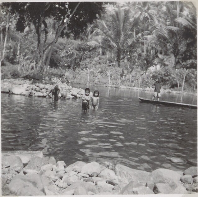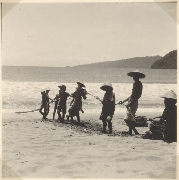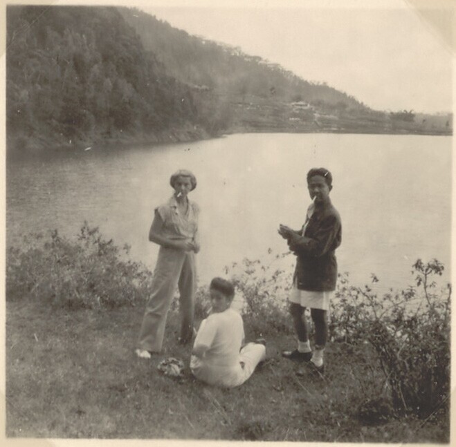 Javaanse vrouw en man en Europese vrouw bij meer in ...