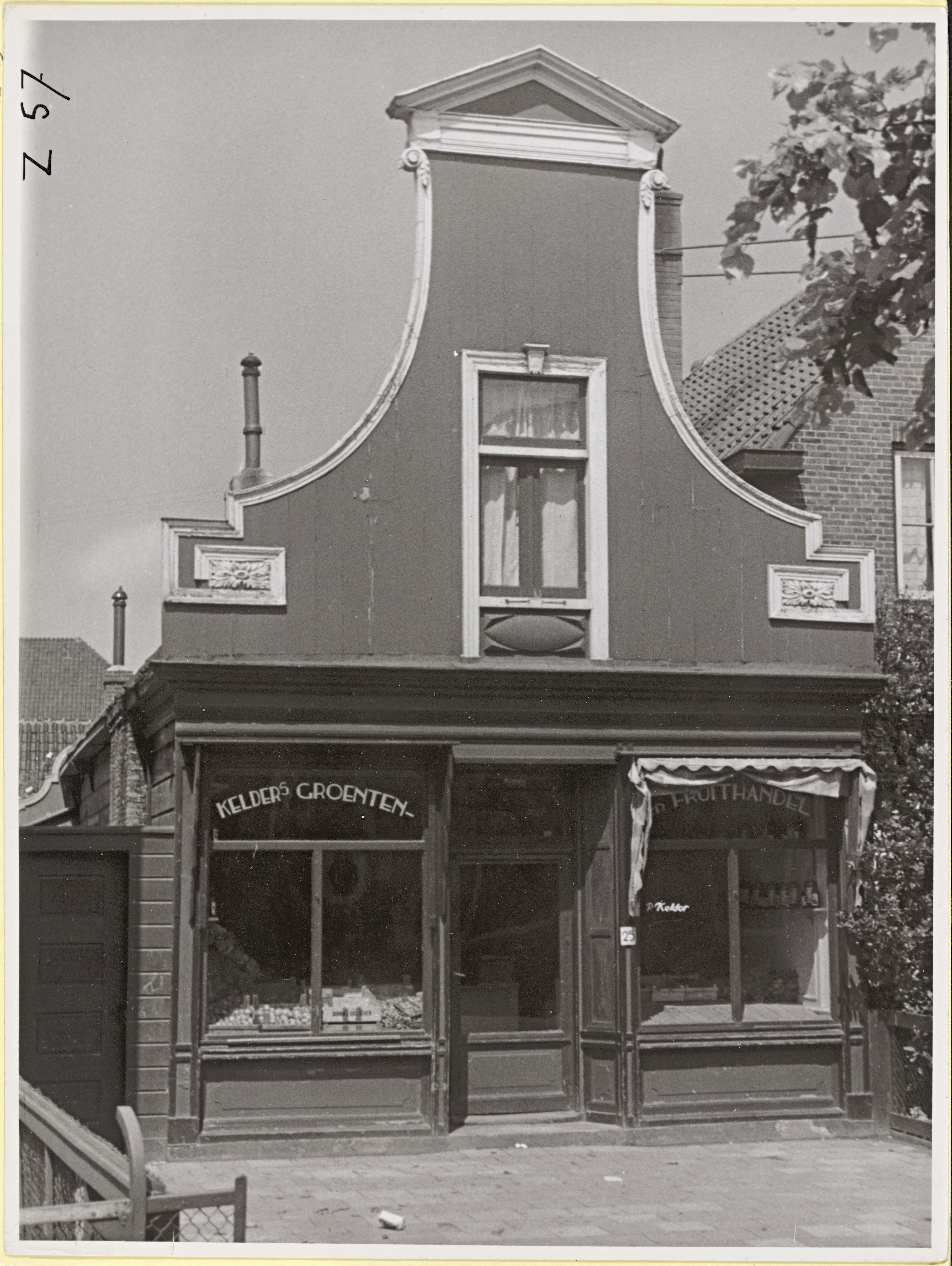 Groentenwinkel met houten Zaanse klokgevel