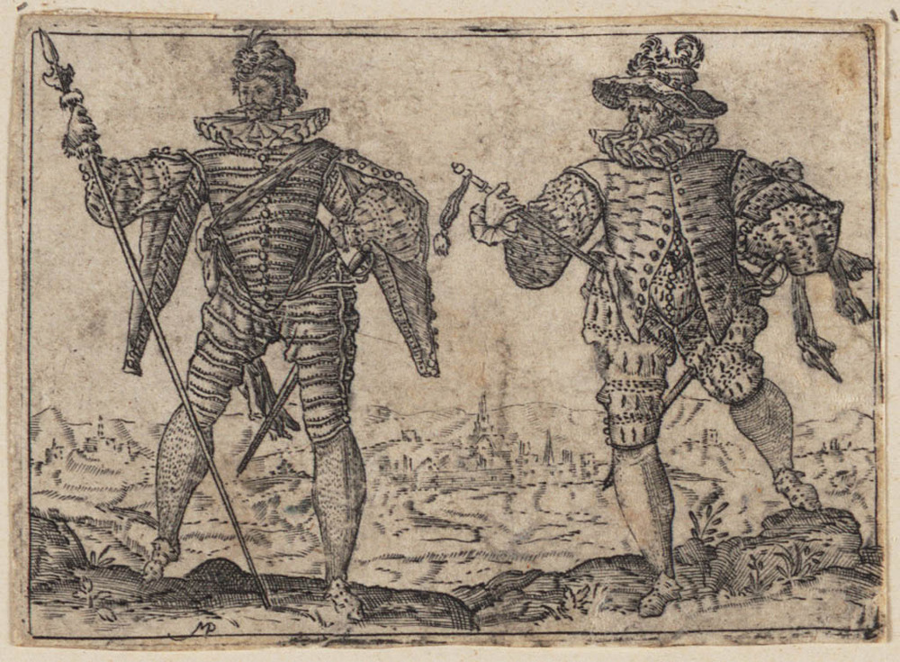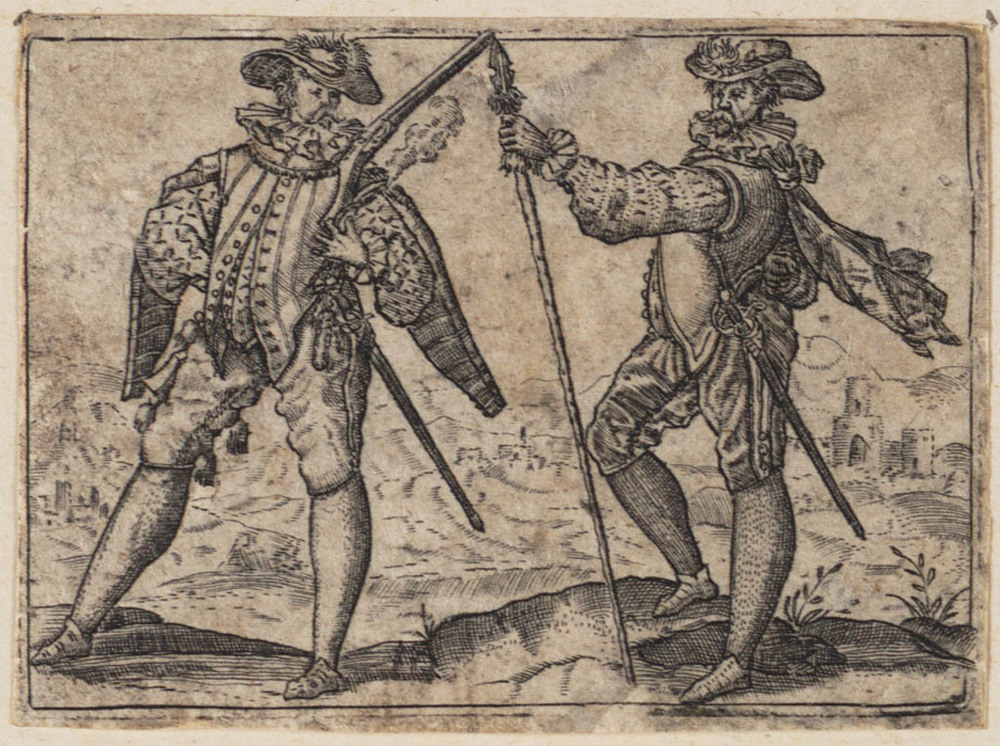 Musketier en een soldaat met een speer