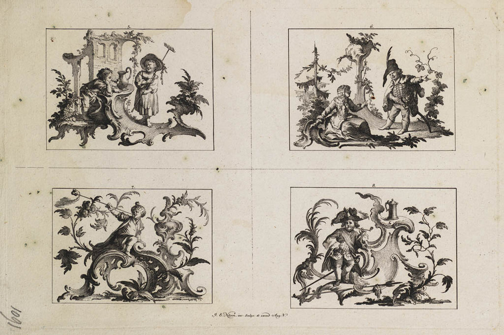 Vier illustraties op een blad (5 t/m 8)