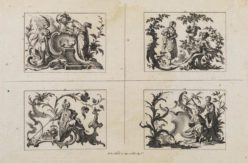 Vier illustraties op een blad (9 t/m 12)