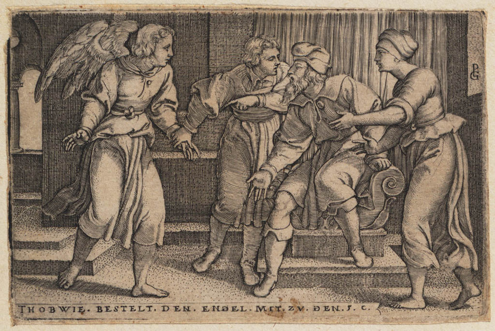 Tobias en de aartsengel Rafaël bij Tobit en Anna