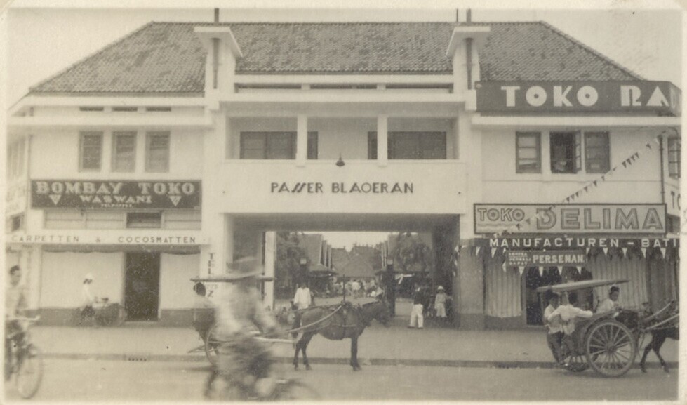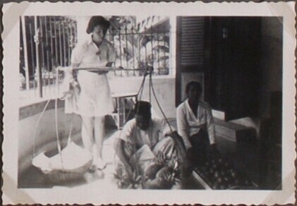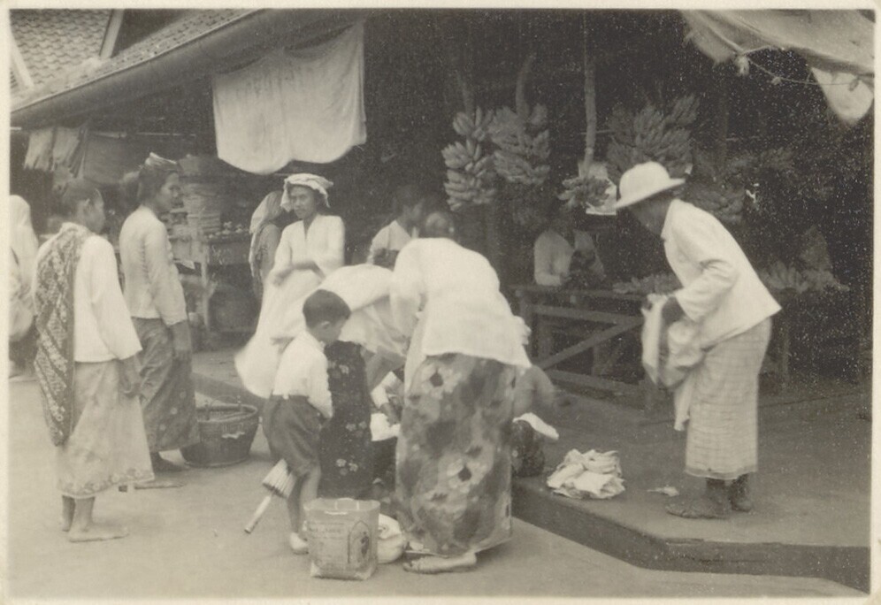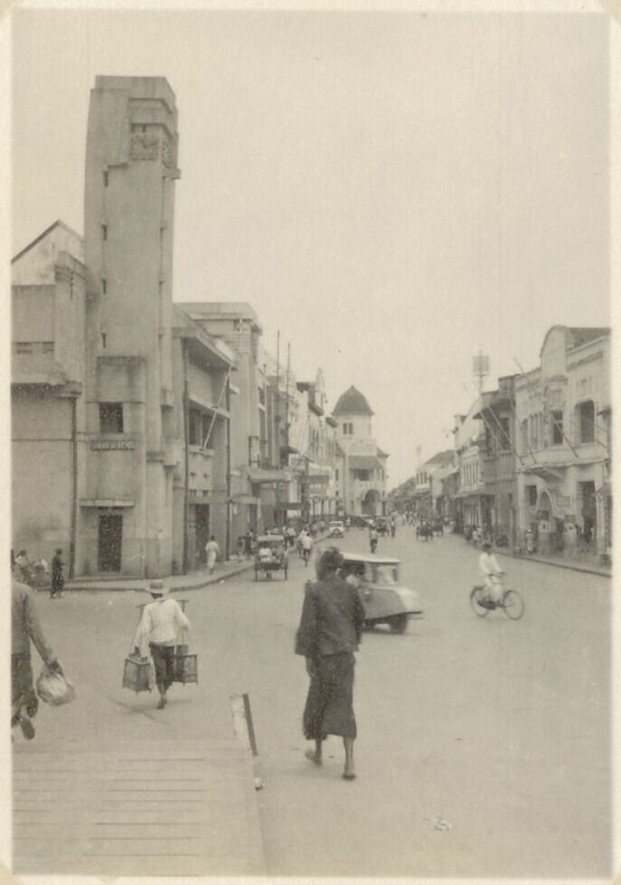 Een Europese vrouw in een Chinese wijk in Soerabaja