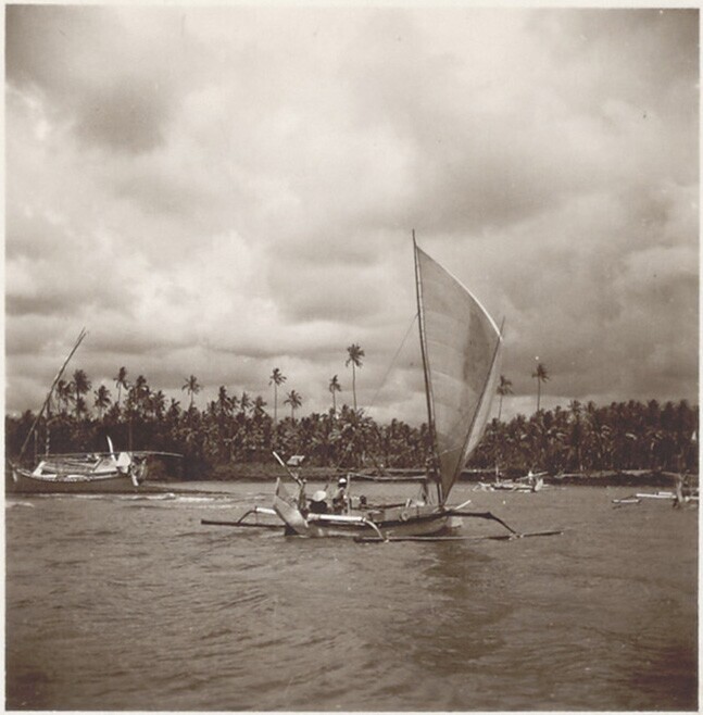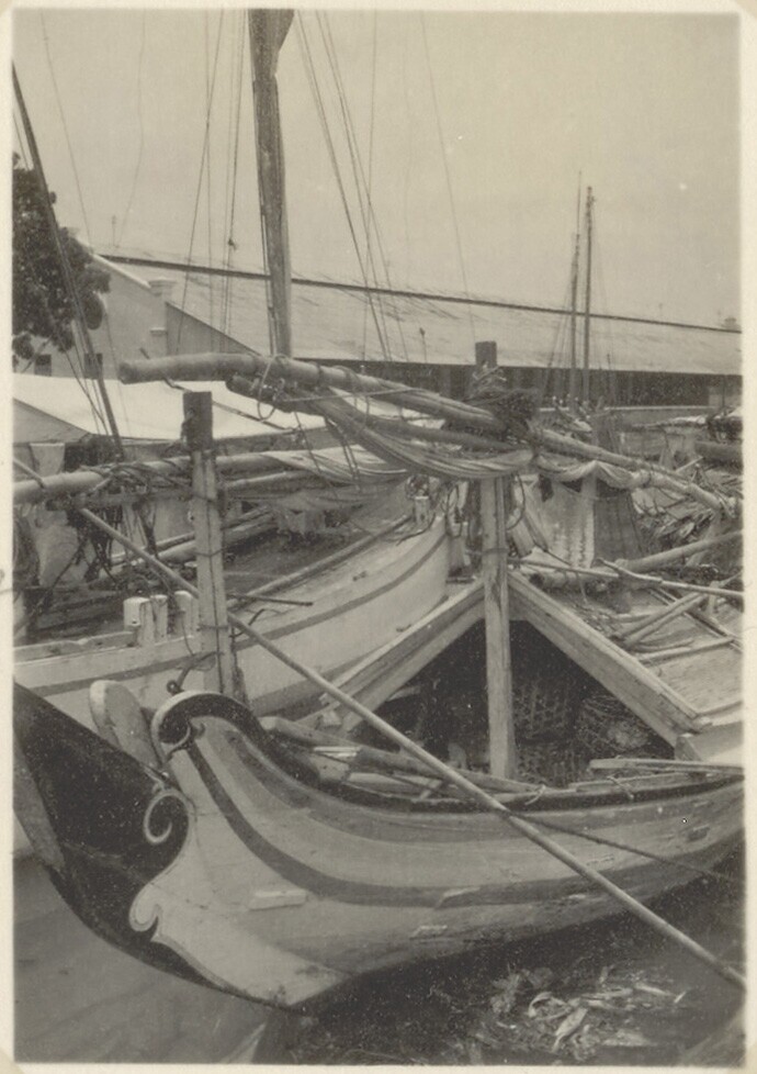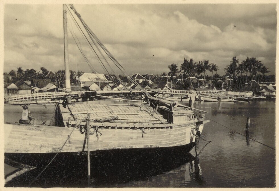 Prauwen langs de kade van de Kali Mas, Soerabaja