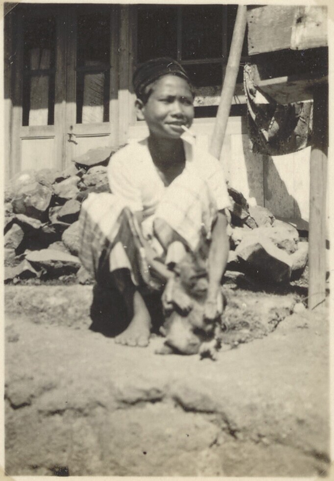 Een Javaanse transmigrant in zijn woning op Sumatra