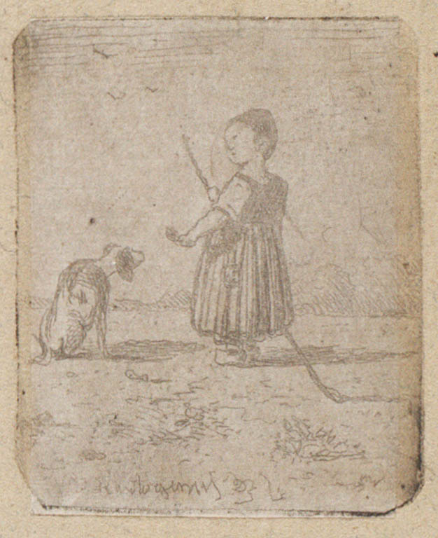 Boerenmeisje met haar hond