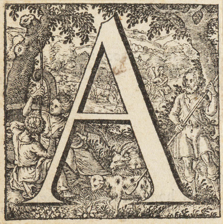 Letter A met landschap en herders