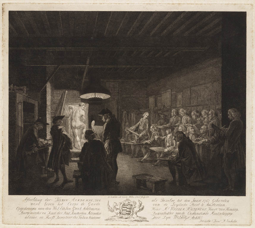 Tekenen naar naaktmodel op de Tekenacademie in de Le...